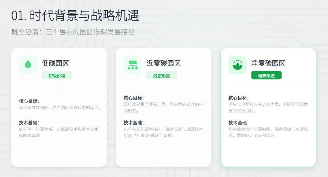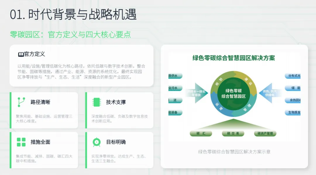 零碳园区建设原理与方法.pdf工业园区贡献全国 11.5% GDP,却承担全国 31% 碳排放,是双碳落地的核心战场。这份零碳园区建设研报,直接给出可落地的定义、核算、技术、路径与破局方案,没有空话,全是可复用的实操框架。报告明确低碳、近零碳、净零碳三级进阶路径,以净零排放为终极目标,用生产、生态、生活三生融合定义零碳园区,锚定用能、设施、管理三大改造维度。园区碳核算严格按 Scope1 直接排放、Scope2 外购能源间接排放、Scope3 价值链间接排放划定边界,以 “总排放−碳吸收与抵消量” 实现动态平衡。技术端以光伏为首选,搭配光热一体化、分布式风电、绿氢、地源 / 水源热泵、生物质多能互补,形成清洁能源矩阵;同步落地能源梯级利用、余热余压回收、IoT 智慧能源管理系统,搭建 “源网荷储” 一体化生态。当前零碳园区面临三大硬约束:标准缺失、前期投资高、运维复杂。报告给出对应解法:推动统一核算认证、用 EMC / 能源托管 / 绿色债券降低资金压力、强化技术研发与第三方运维。全文不堆砌概念,把建设原理、技术选型、智慧管控、挑战对策浓缩成一套可直接套用的建设手册,适合园区管理者、能源从业者、绿色低碳方案方快速抓取核心要点。