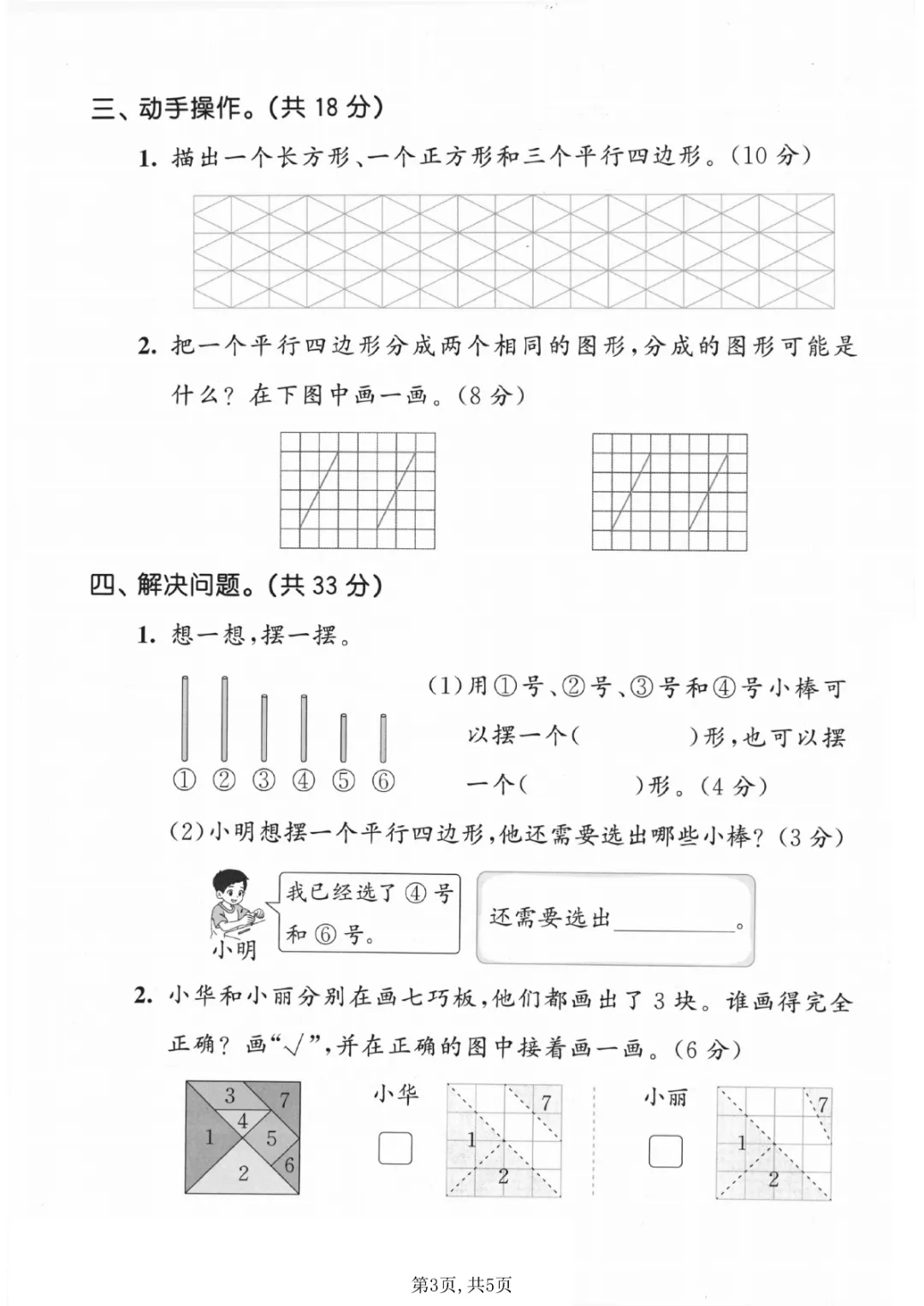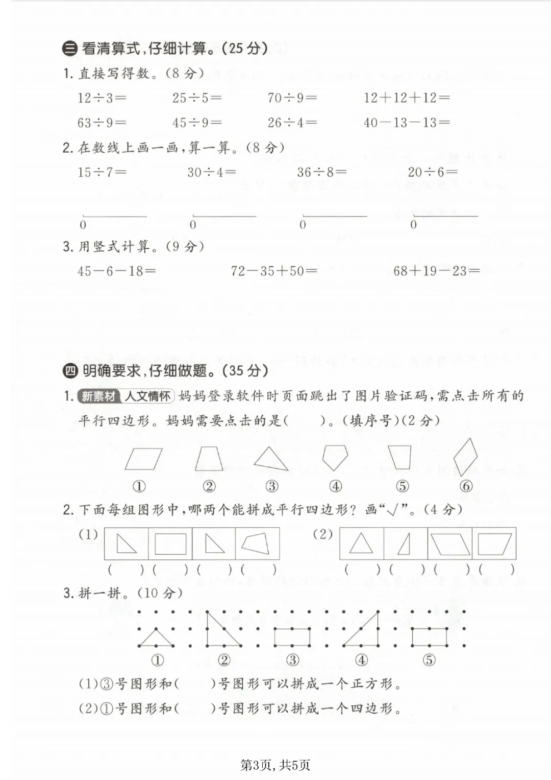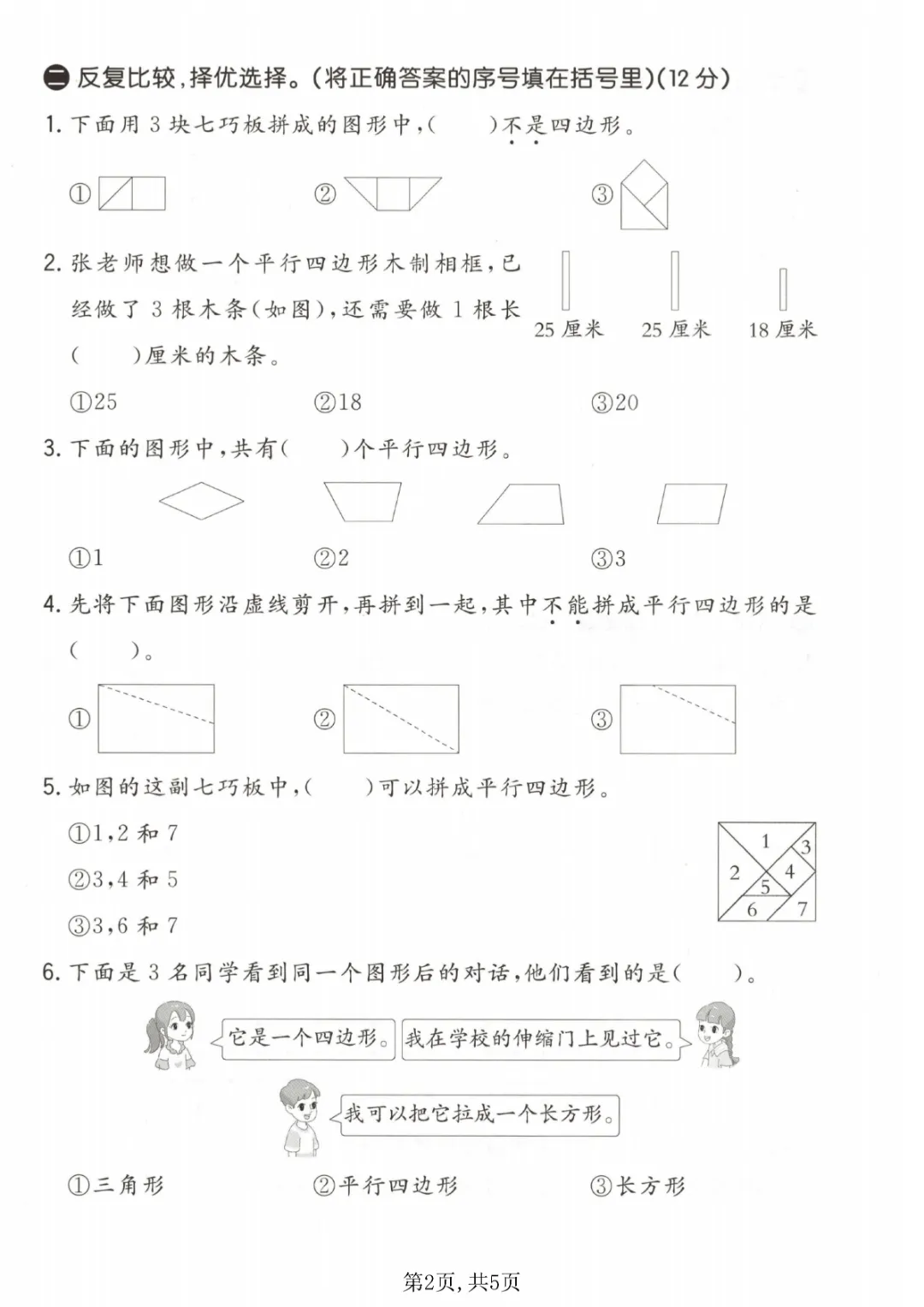 今天给家长们分享的是:二年级下册数学北师版《第五单元测试卷3套带答案》| 完整高清电子版可打印