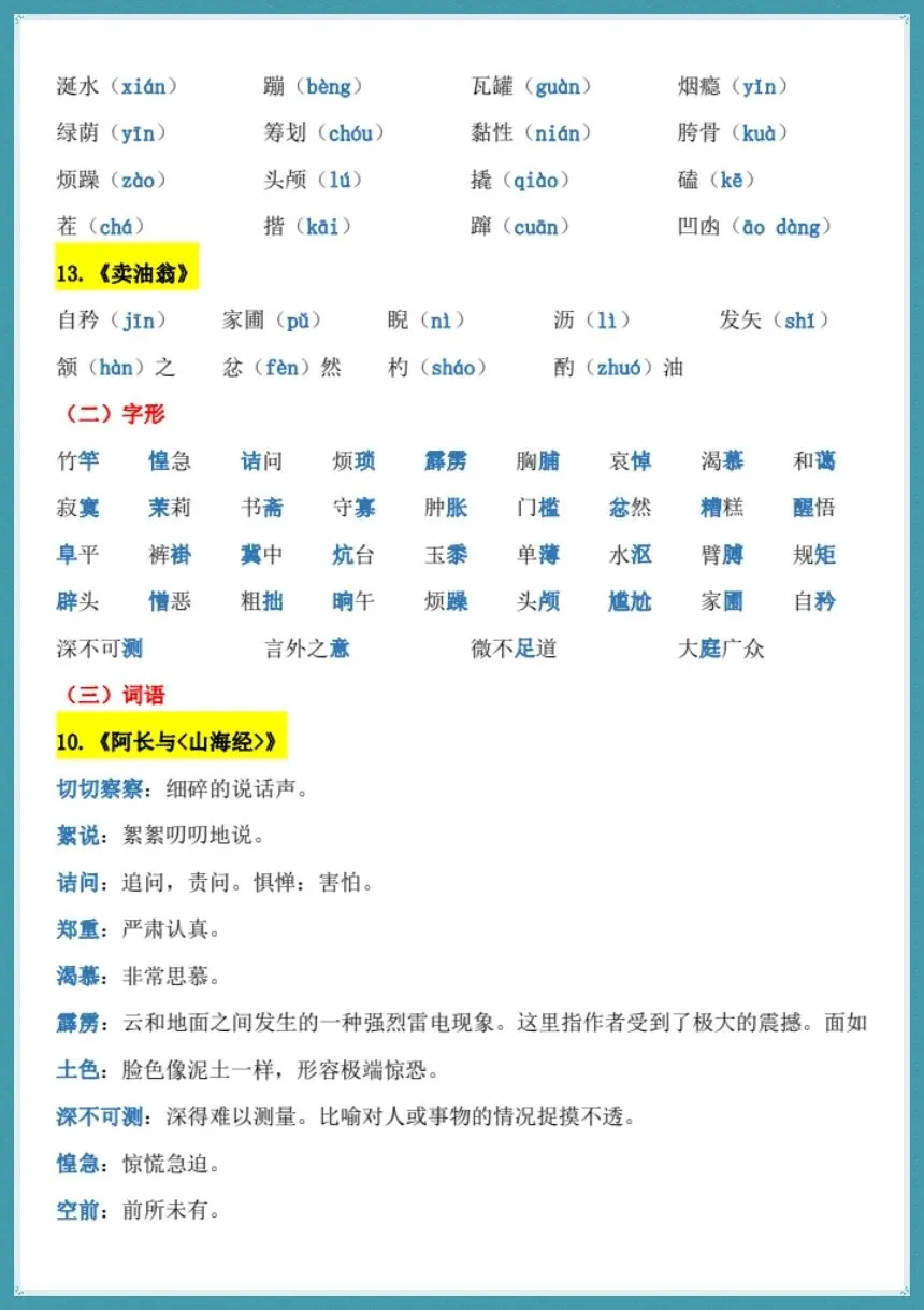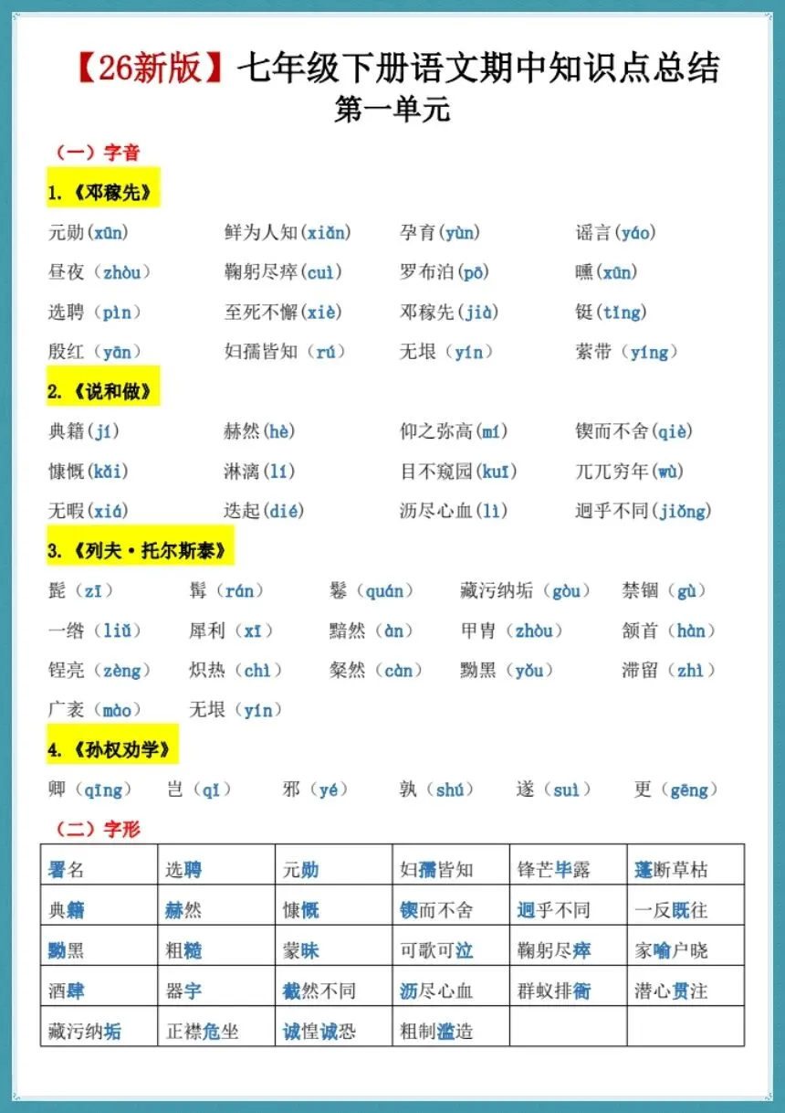 26新七下语文期中复习知识点总结【电子版可打印!】