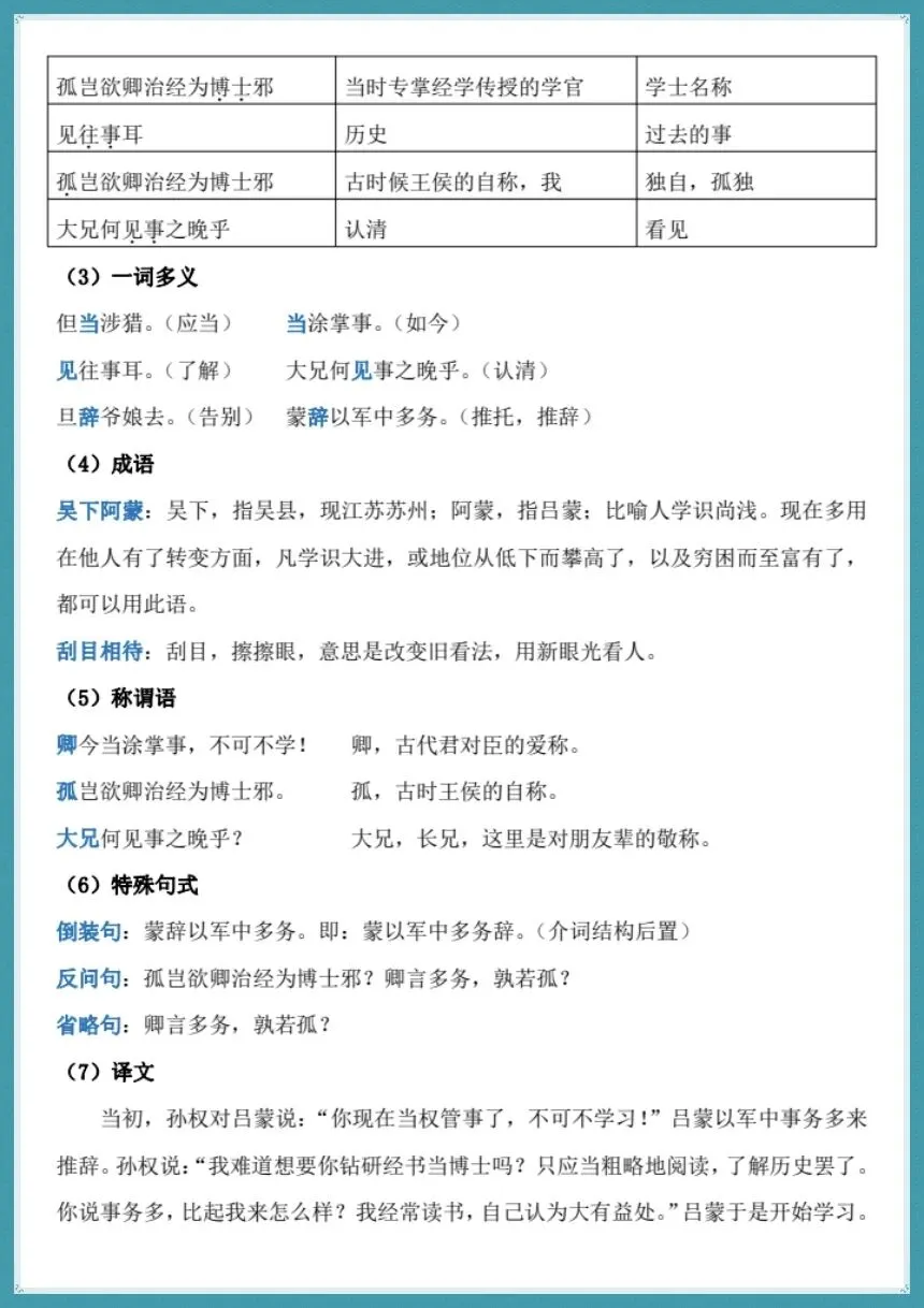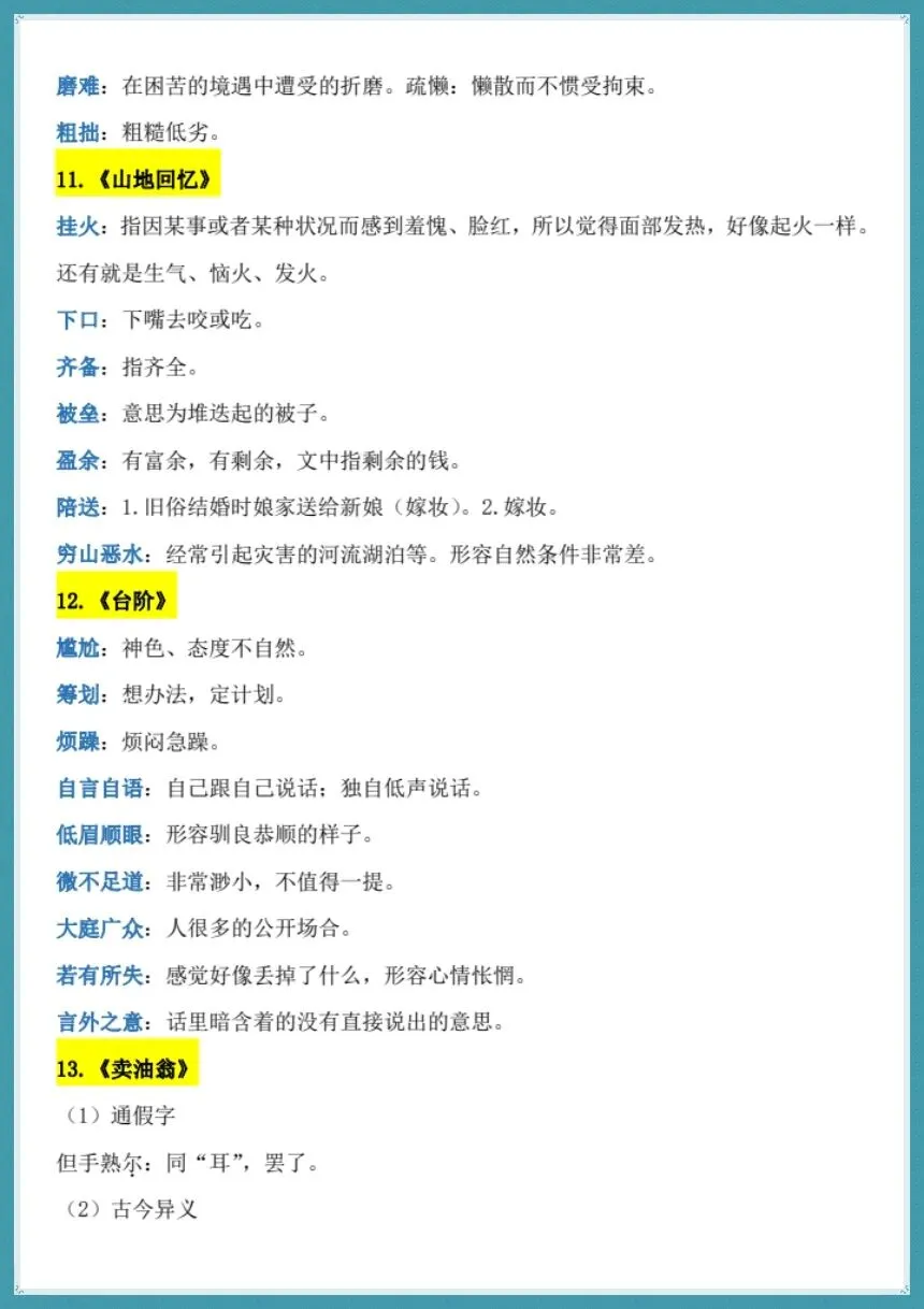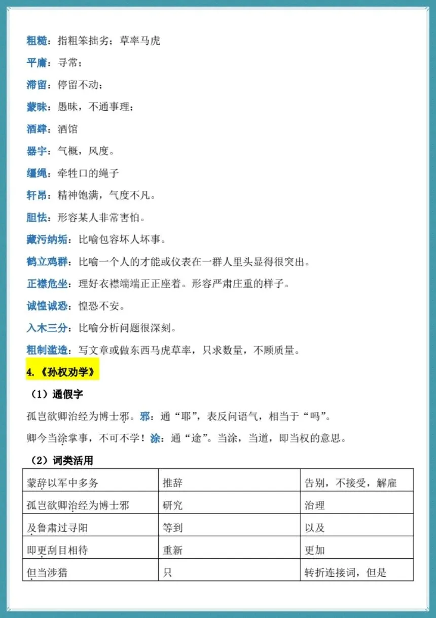 所有的知识都没有错误,排版也很清晰有序,可以用来晨读背诵、课堂查漏、考前冲刺。已经对冗余的内容进行删减,把排版逻辑整理好,并且增加期中考试中必不可少的现代文主旨和人物形象等内容,弥补了基础资料上的不足。基础薄弱的学生可以夯实字词的基础,中等水平的学生可以巩固文言和默写的内容,优秀学生可以冲击阅读高分,整个过程都可以满足不同层次学生备考的需求。