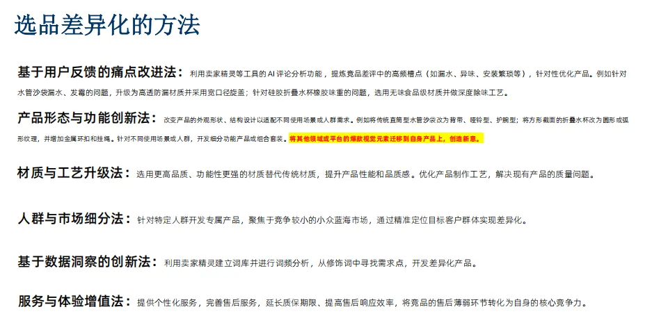模板下载思路(复制粘贴):品名 | 月销量 | 均价 | 竞争前10总销量 | 我的机会点 | 上架优先级健身水壶 | 5K | $18 | 35K | 车载专用 | ★★★★☆孕妇杯 | 2K | $22 | 8K | 单手开盖 | ★★★★★