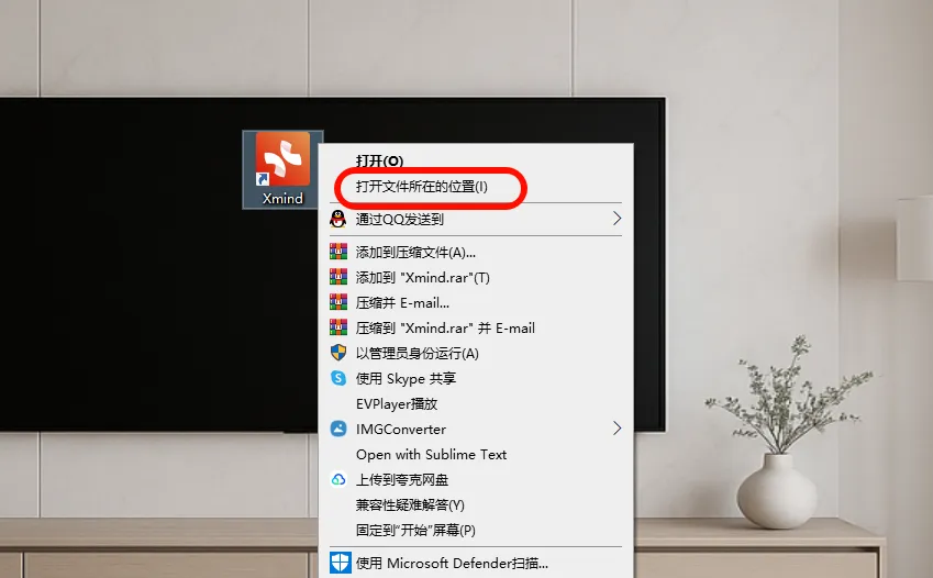来到桌面,右击Xmind快捷方式,选择打开文件所在的位置