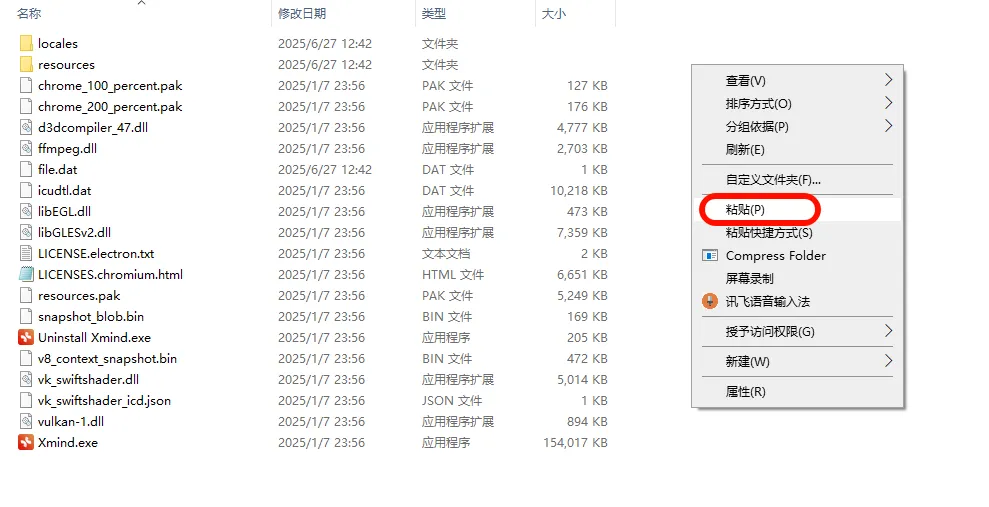 1.找到下载好的Xmind安装包,解压安装包:①鼠标右击【Xmind2025】压缩包②选择"解压到当前文件夹"