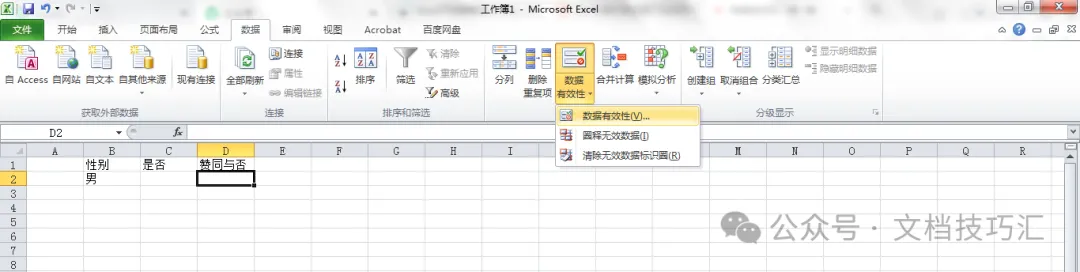 2.点击菜单中“数据”,数据工具中“数据有效性”。