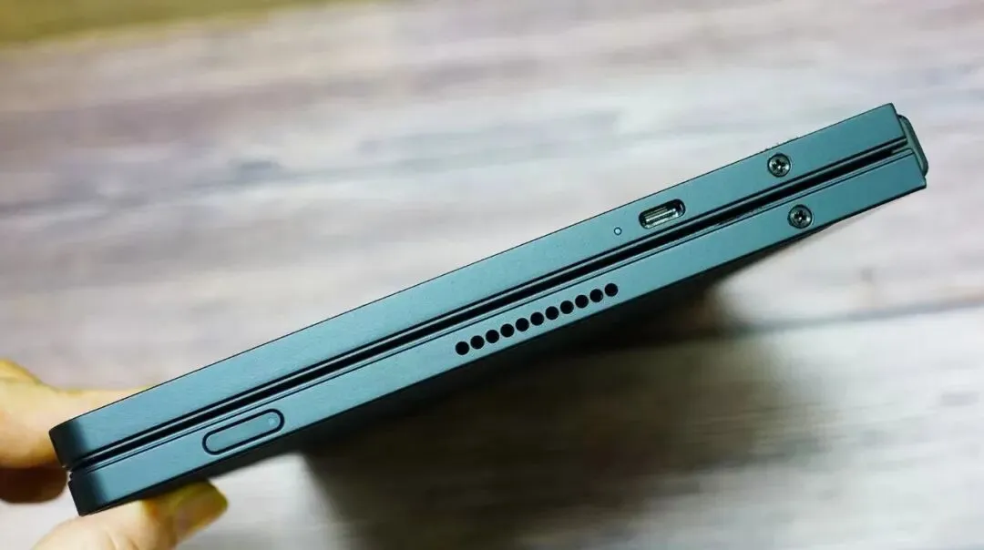 浑然一体平板电脑外观。拆包装取真机,这台Fold16的外观设计很另类,默认折叠状态下,它的a面和d面由完整的复合材料镶嵌而成,做成了凹凸的皮革纹理。机身中框及边缘处,是纯粹的直角边中框,醒目的金属材质,磨砂底壳,上面零星分布了双雷电接口,电源开关和音量加减按键等。而在转轴处,又额外增加了包括的皮革,隐藏了转轴结构,让转轴也与底壳保持水平,颜值更高。机身展开状态下薄至8.6mm,仅有1.28千克,纤薄轻巧又精致。