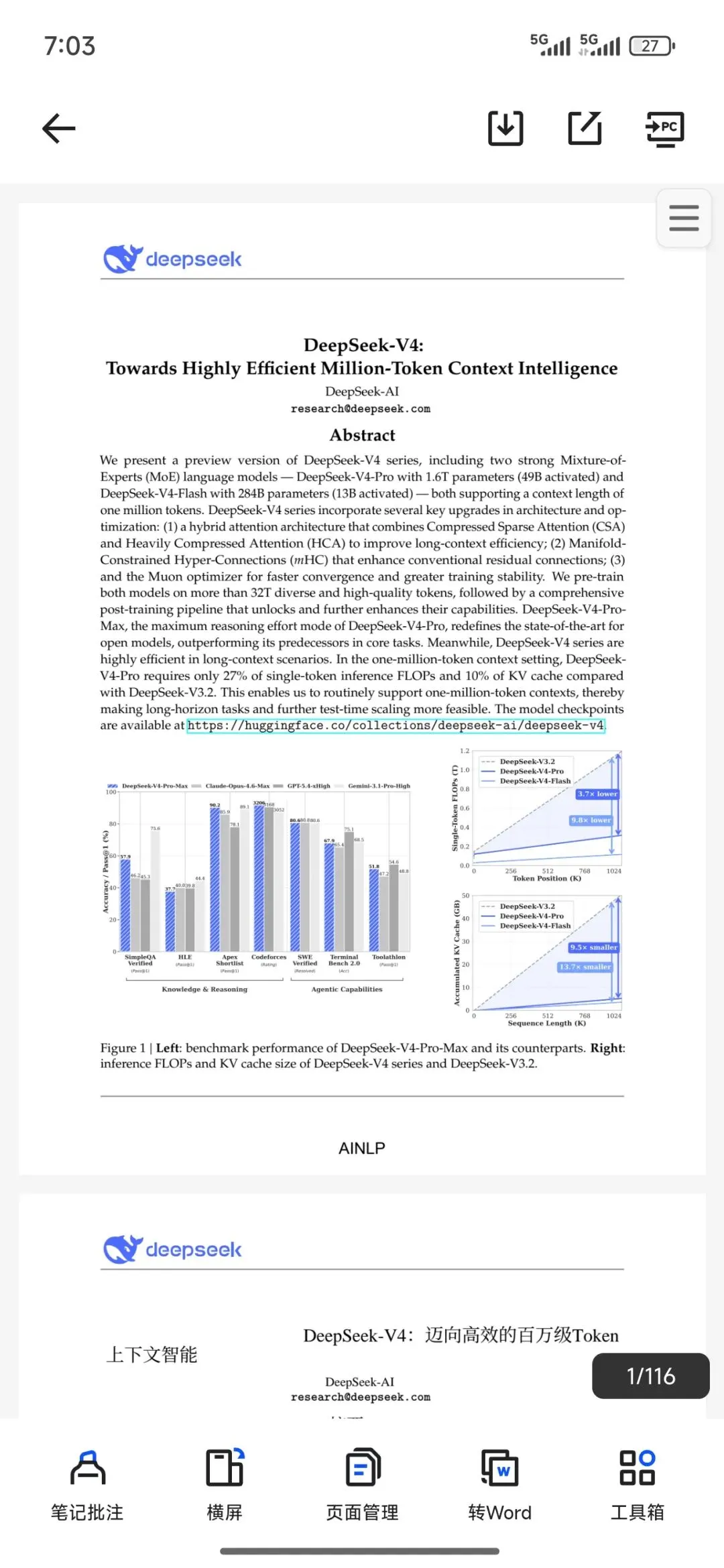DeepSeek-V4官方技术报告全文整理,中英对照排版,阅读更顺畅,AI从业者、研究者、学习参考都很实用!