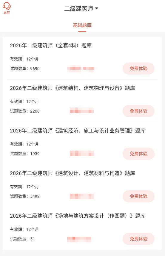二级注册建筑师全套共4科,包括:《建筑结构、建筑物理与设备》《建筑经济、施工与设计业务管理》《建筑设计、建筑材料与构造》《场地与建筑方案设计(作图题)》。
