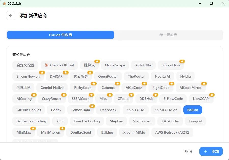 为了方便大家能够接入各种模型并随意切换,推荐大家一个更通用的工具CC Switch。