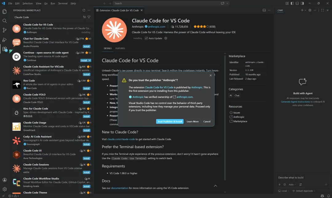 提示点击“Trust Publisher & Install”