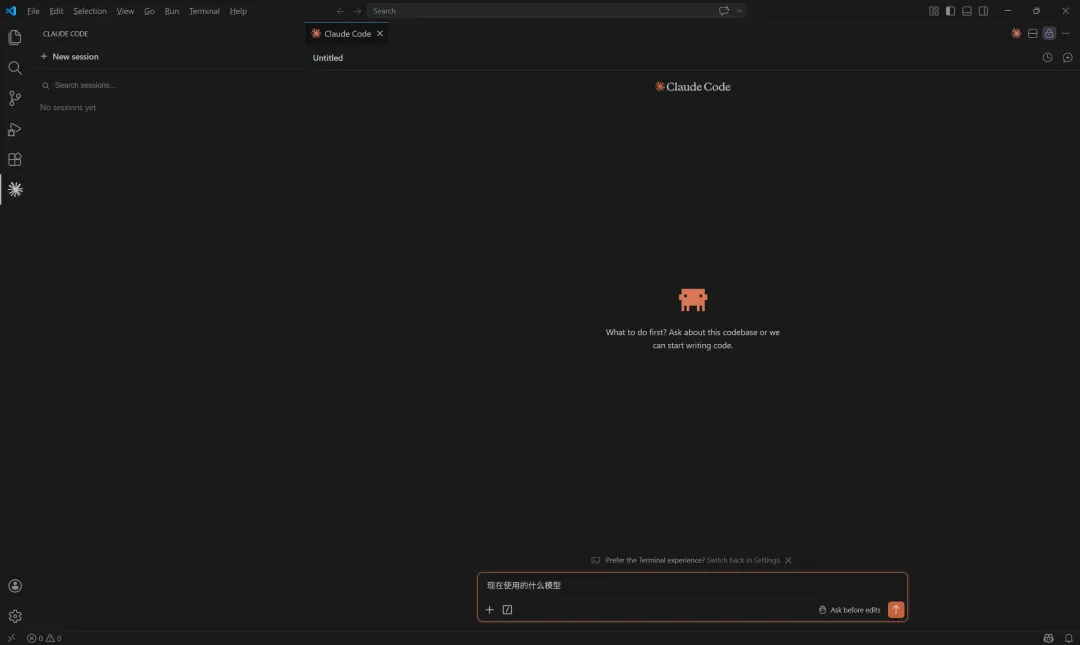 不知道大家有没有发现一个问题,PowerShell 不太好用,推荐大家使用 Visual Studio Code(下文简称 VS Code) 之 Claude Code 插件,界面更加友好。
