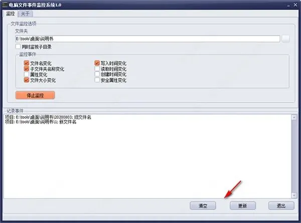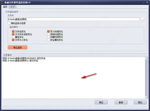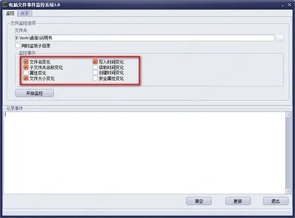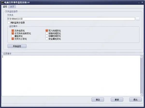 软件界面简洁直观,上手无门槛,不管是新手还是老用户都能轻松操作。所有监控到的文件变化,都能在记录事件中清晰查看,日志信息也支持一键清空,后续维护起来十分省心。