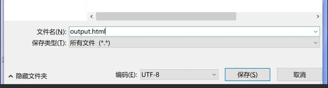 2)创建一个空文本文件,将HTML复制进去,文本文件存储为HTML格式,记得是utf-8编码,类似下图