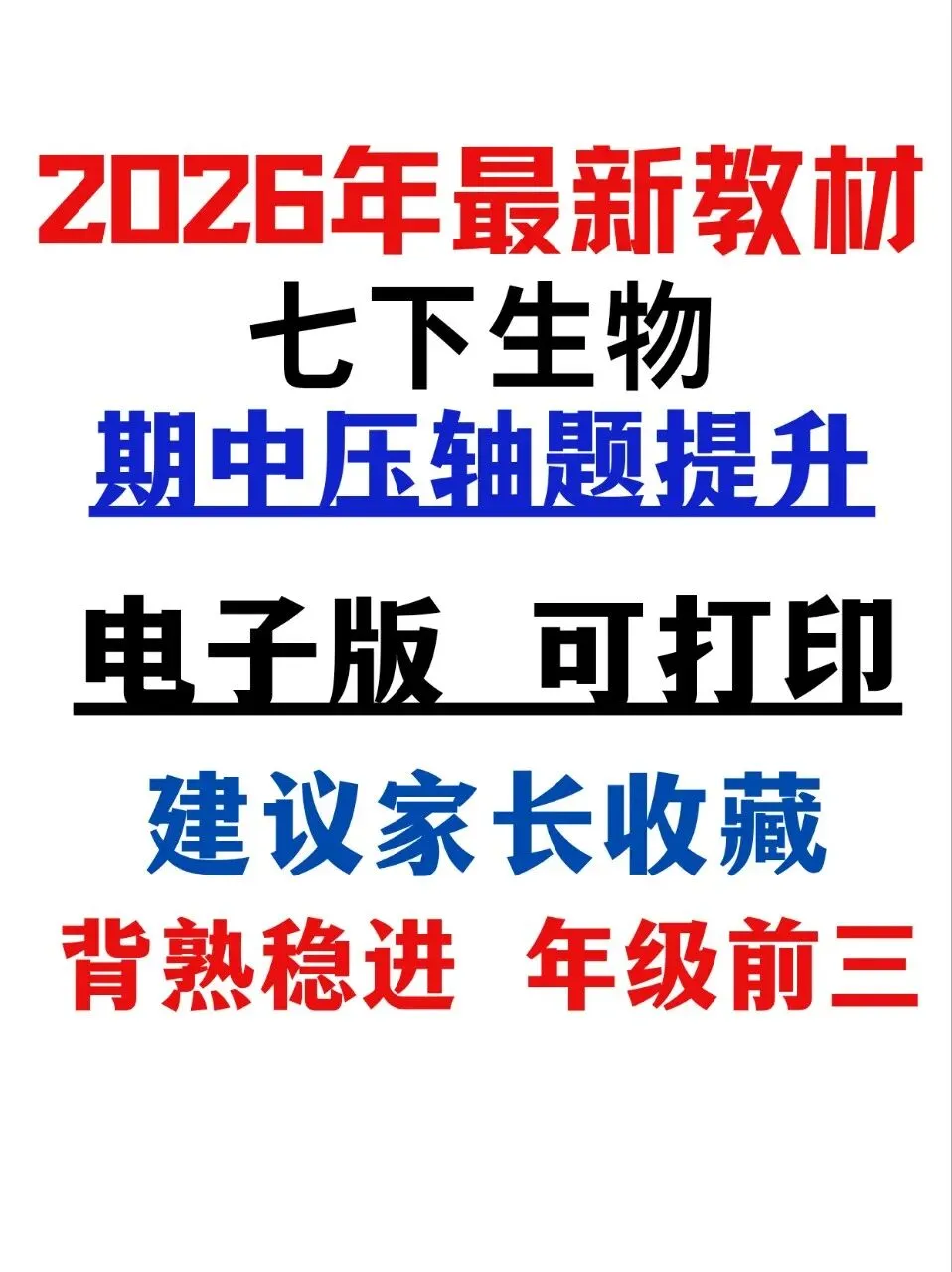 帮我写作,帮我如何利用老师整理好2026年最新教材七下生物期中压轴题高效提升。初中生物知识点细碎,期中备考抓不住重点,刷题杂乱没方向,是很多同学的通病。