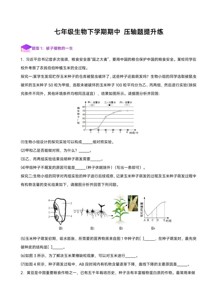 2026七下生物期中冲刺|吃透压轴题,轻松稳拿高分