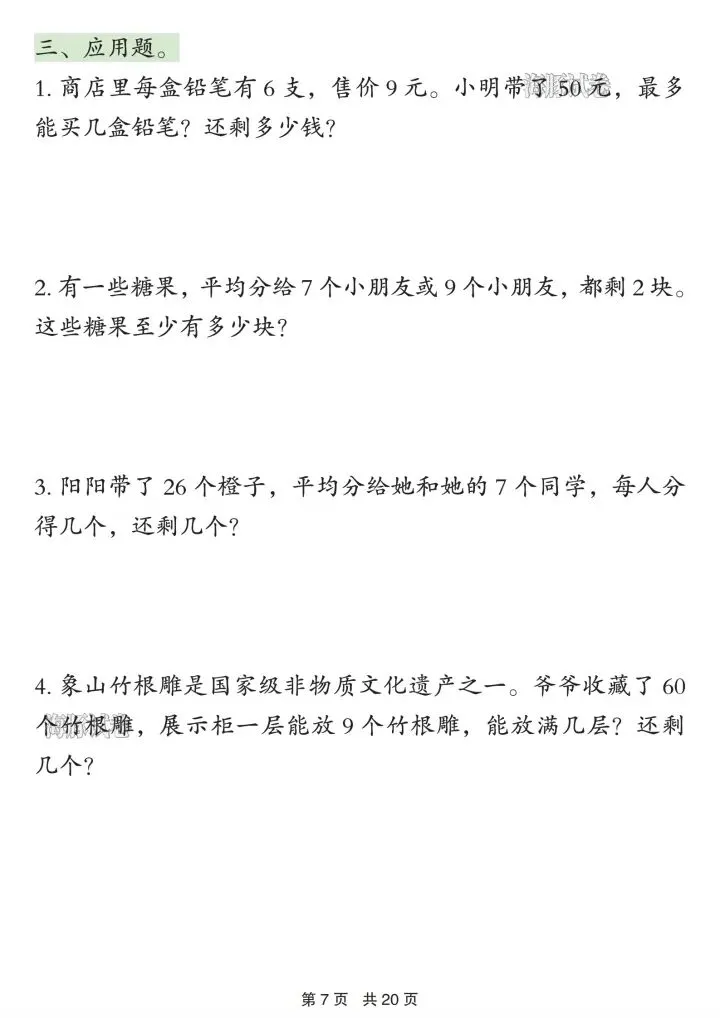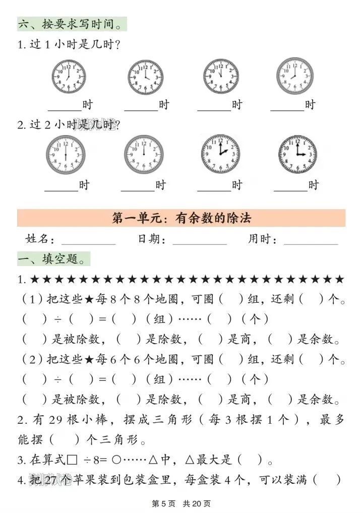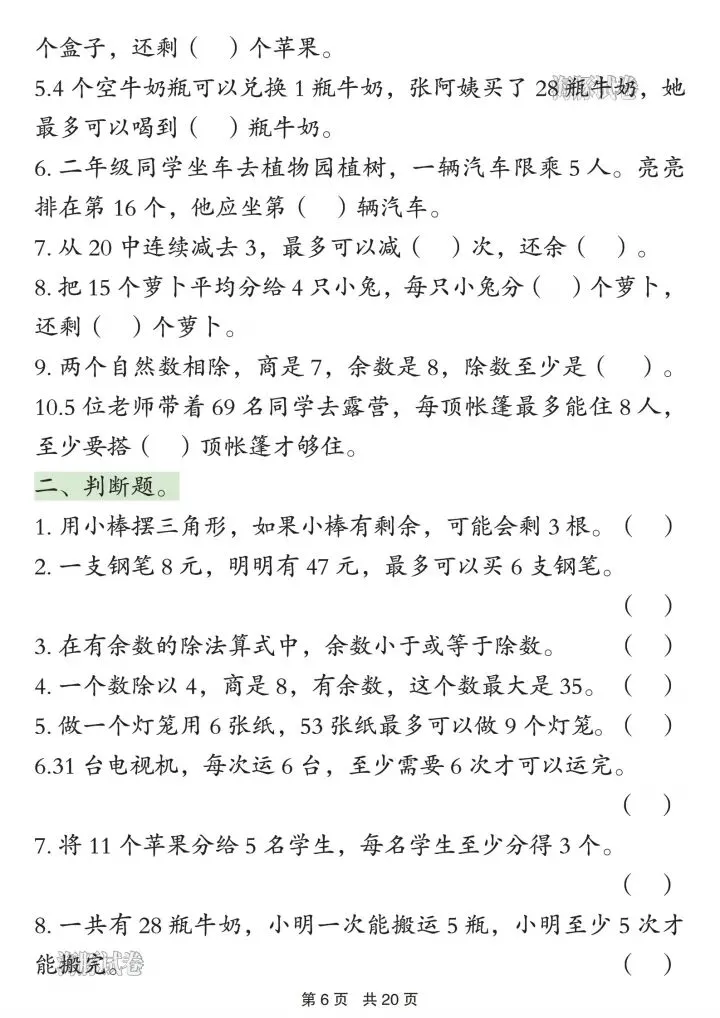 2. 有余数除法:余数规律、填空、解决问题