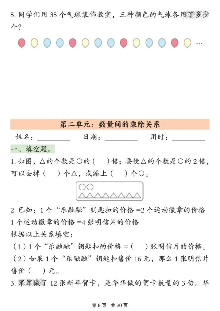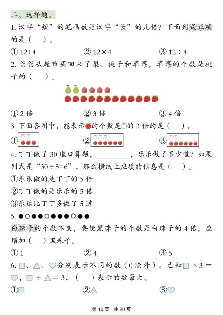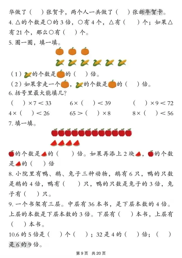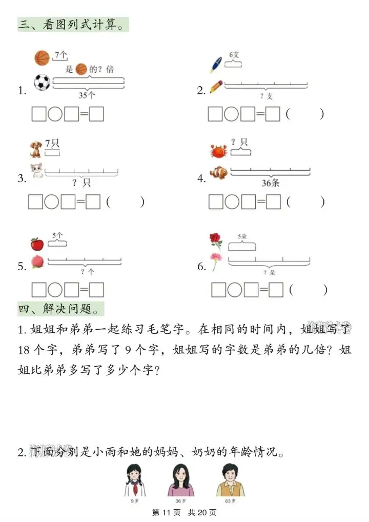 3. 乘除倍比:倍数关系、看图列式、实际应用