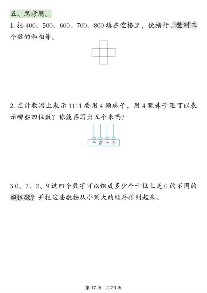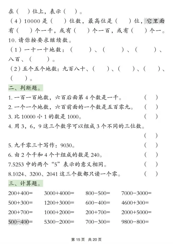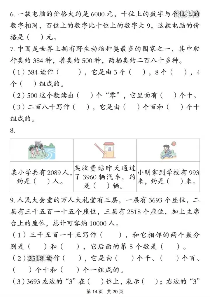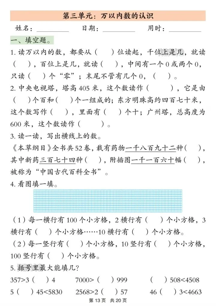 4. 万以内数:读写、组成、比较、估算、口算