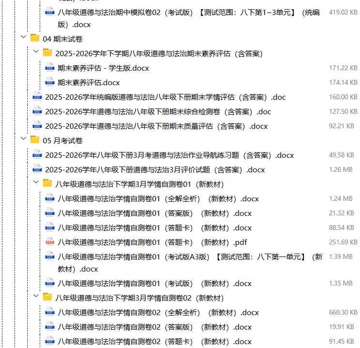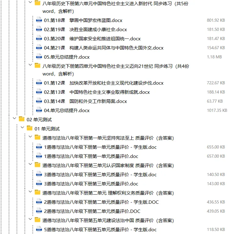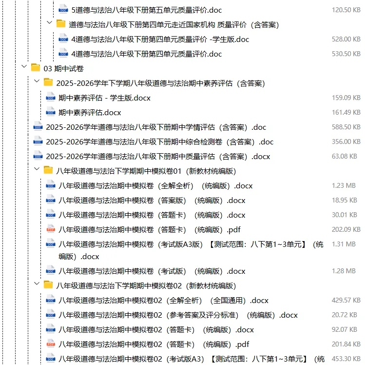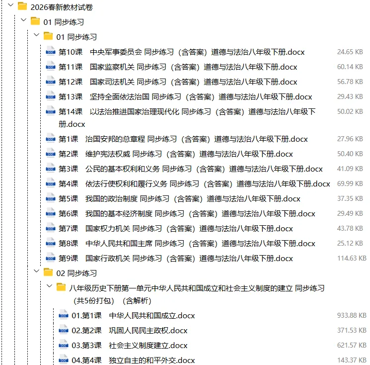 【电子版】2026春人教版初中八年级道德与法治下册 (课时练习+单元测试+月考试卷+期中试卷+期末试卷)全套下载 可编辑打印注意:下拉到文章底部有二维码的地方下载01资料目录下拉到文章底部有二维码的地方下载02资料阅览 版面有限 仅展示部分内容下载方法长按二维轻松下载电脑下载,方便保存复制网址去电脑打开:https://jazpan.com/view/2449707更多资源,关注以下公众号教师·学生图文来自网络,版权归原作者,如有不妥,告知即删点击阅读原文下载1-12年级全部资