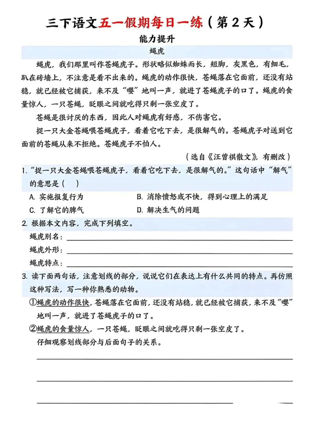 今日课代表给大家分享的是:2026年三年级下册语文五一假期作业,电子版可下载可打印。