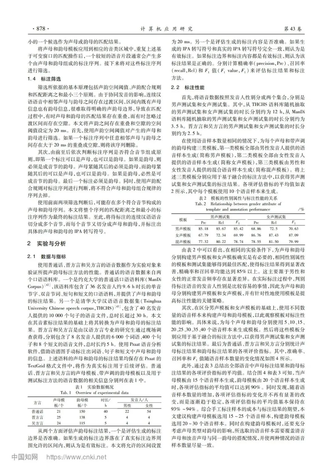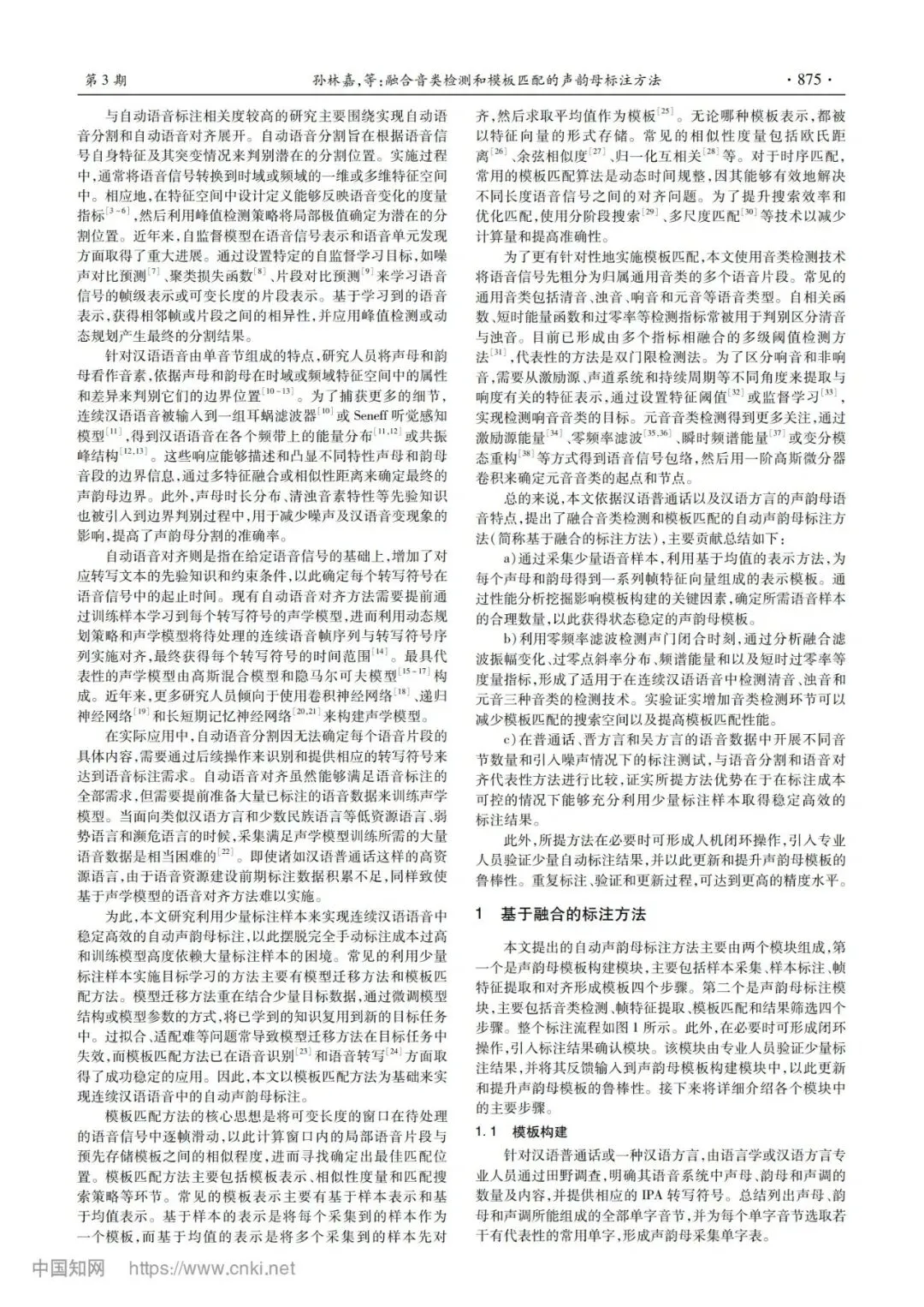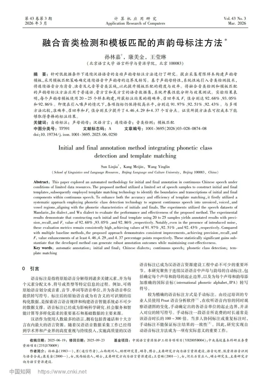成果速递|孙林嘉等:融合音类检测和模板匹配的声韵母标注方法