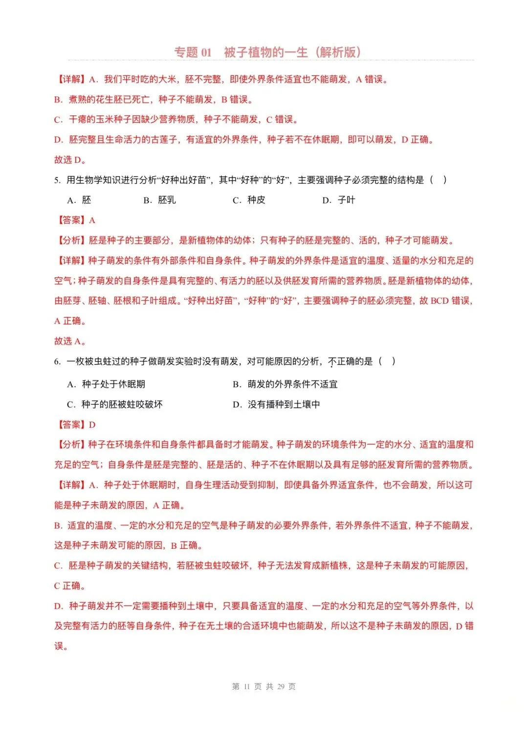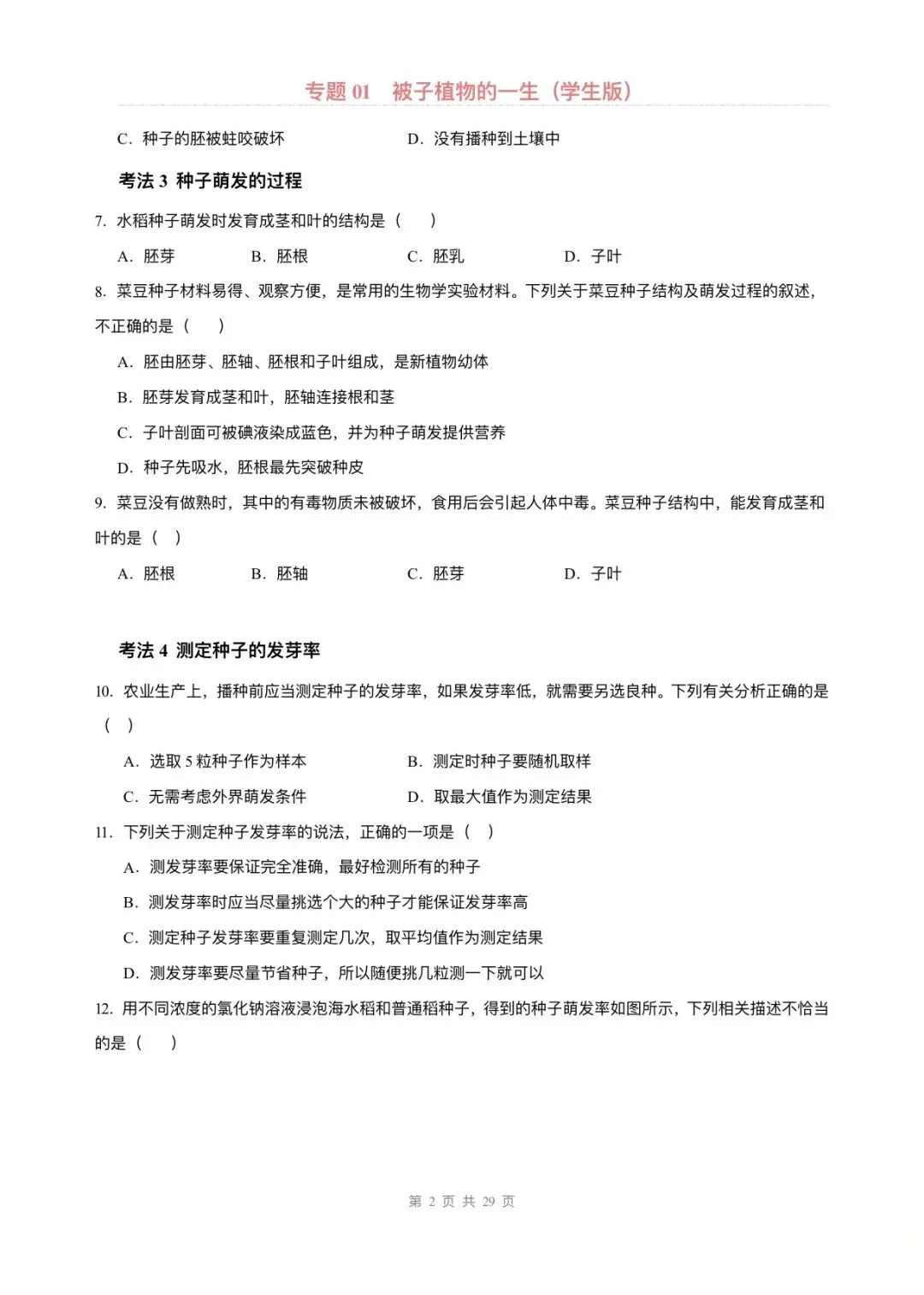 大家好,今天老师整理了:2026版七年级下册生物期中专题复习专题专项练习,可打印电子版!