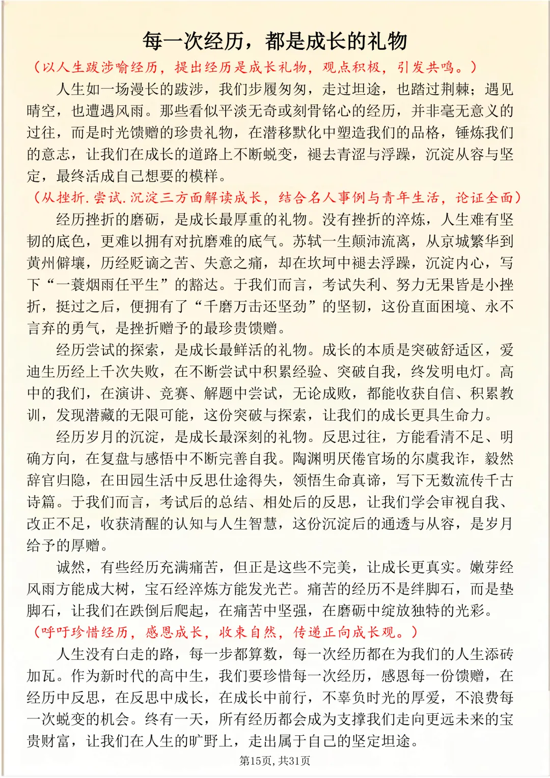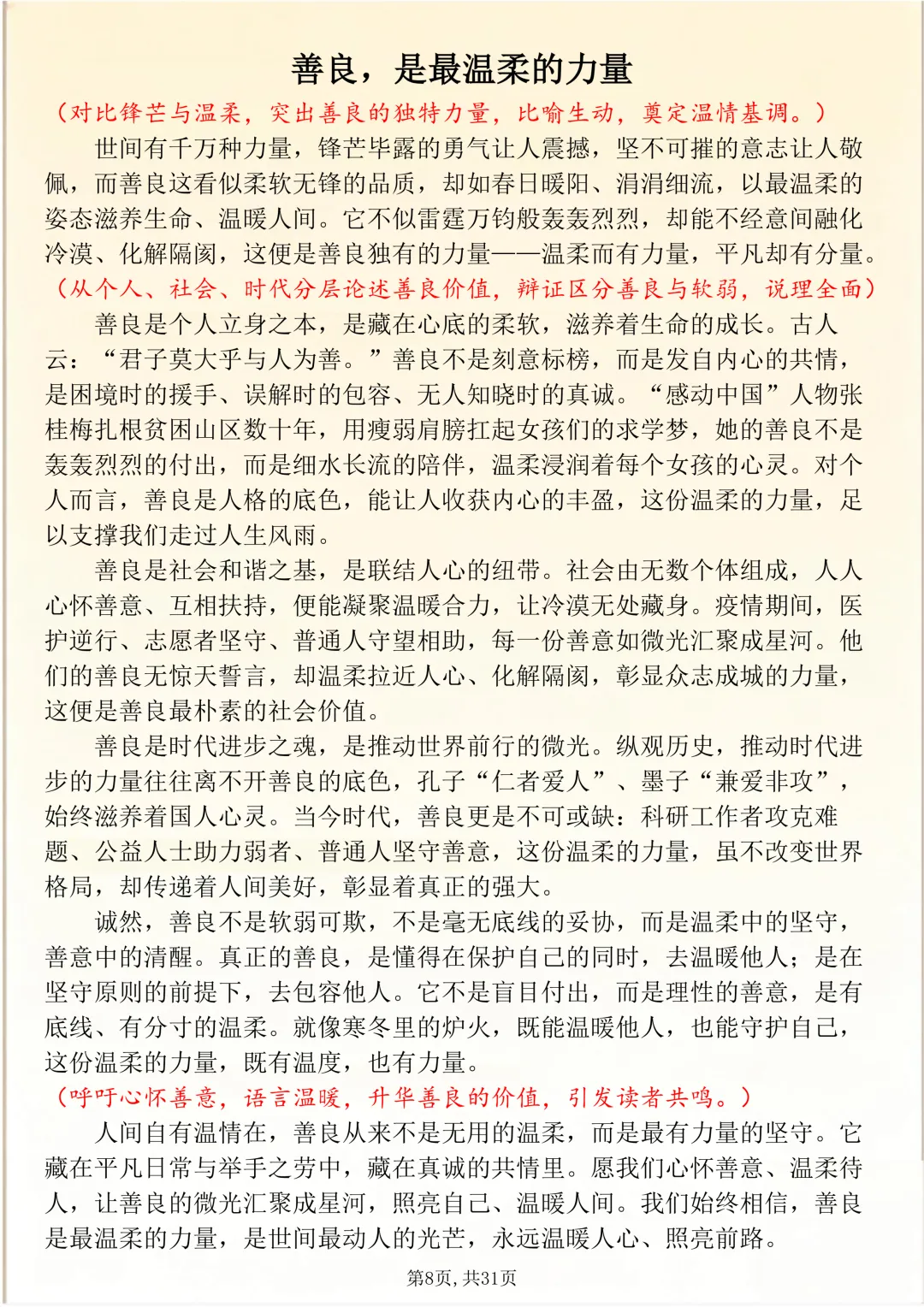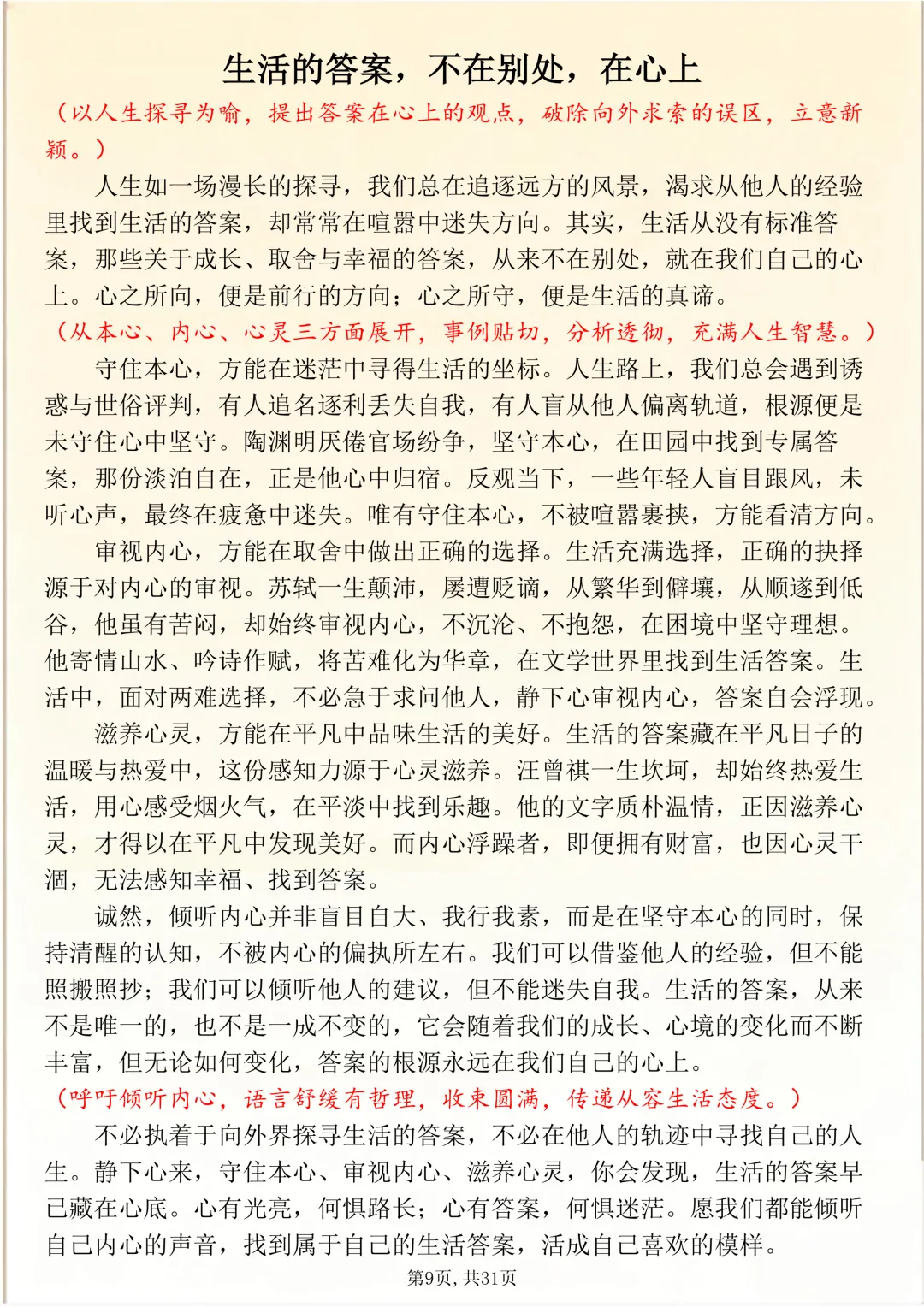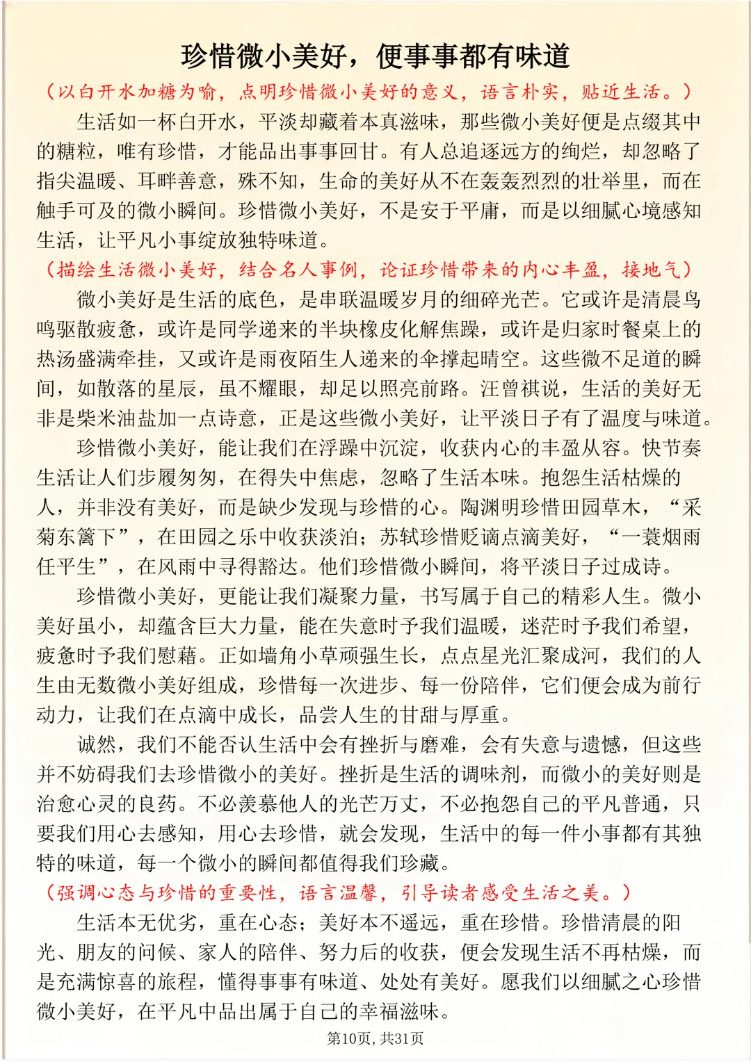 可打印,中考必看,立意深刻 + 文笔优美双达标的30篇高分范文因篇幅有限,点击我的头像私信我回复“资料获取” 就可以领取 word 电子版。以下是部分资料内容,完整高清版的发送私信即可。本篇文章一共 30 篇,完整版可打印↓↓↓