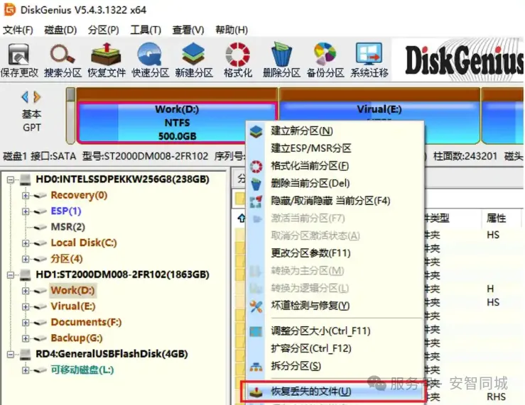 电脑开机重启只剩c盘了?不管是病毒攻击、意外断电或不当操作导致这个问题。只要严格按以上流程操作,非物理损坏的分区数据恢复成功率超90%。如果硬盘识别成功,及时使用数据恢复软件进行专业数据扫描并恢复,如果磁盘未识别,或操作中遇到分区混乱或硬件报警,建议暂停并咨询安智专业运维人员。