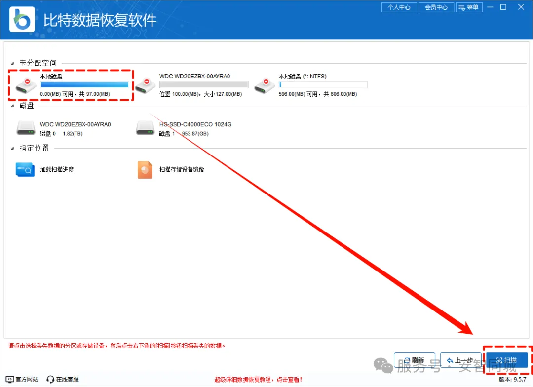 ▶操作步骤:以“比特数据恢复软件”为例,讲解电脑数据恢复操作步骤