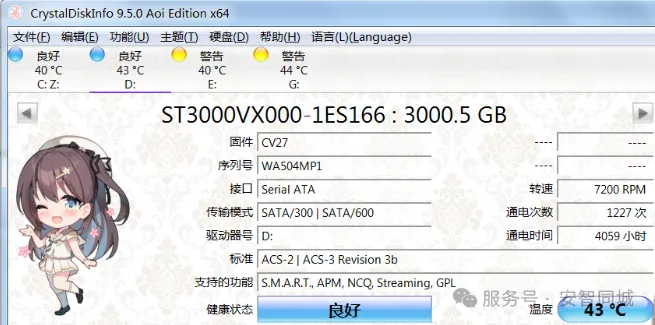 使用CrystalDiskInfo查看硬盘SMART状态: