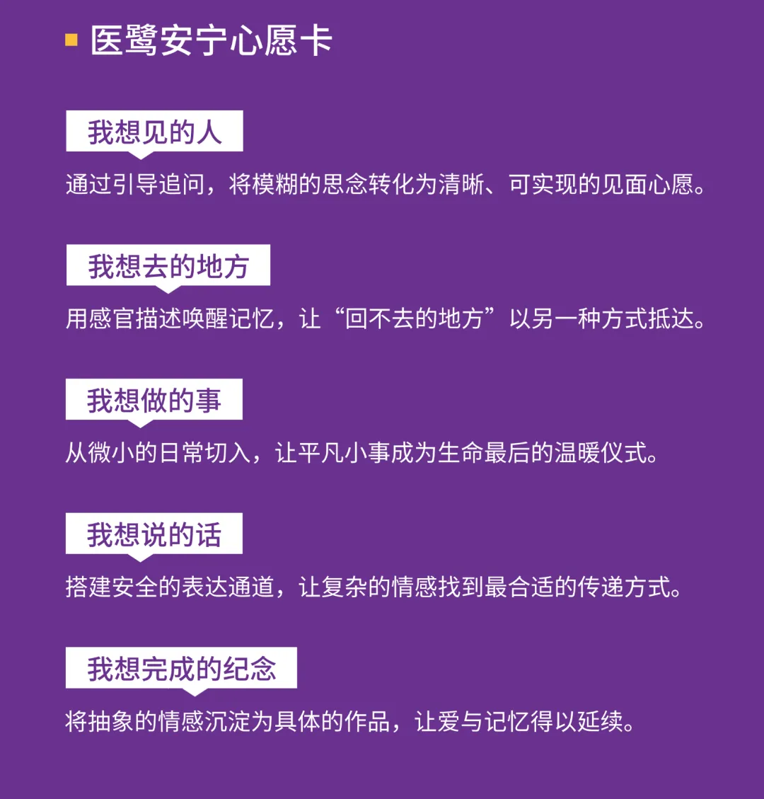 正是基于这样的洞察,医鹭安宁设计开发了“心愿卡”。