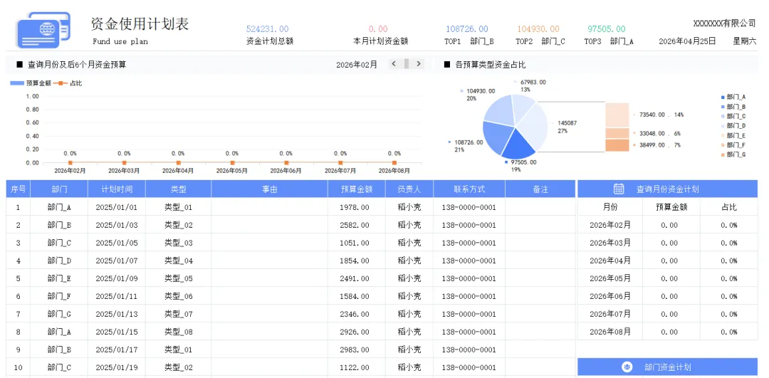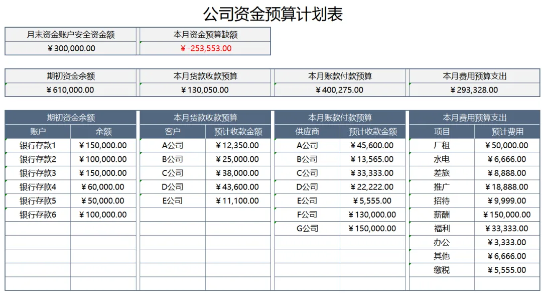 企业日常经营离不开资金流转,合理做好资金规划格外重要。不管是日常零散开支、项目付款、税费社保、应收回款都有可能导致账务杂乱无章,还很容易出现资金混乱、周转紧张等问题。下面小编就为大家整理了资金计划表模板,可一键套用,提前做好资金分配,让每一笔资金使用都有据可依,让我们一起往下看看吧~