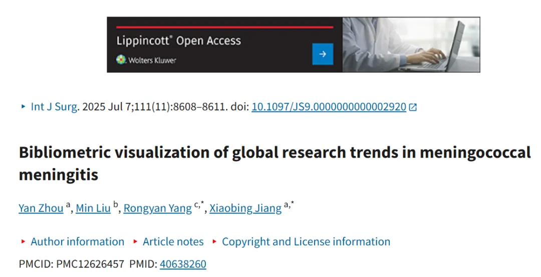文献计量学分析作为一种定量研究方法,是绘制研究格局、识别现有研究空白以及揭示特定领域研究热点的重要工具。该方法已在医学与健康领域得到广泛应用;然而,目前尚缺乏专门针对脑膜炎奈瑟菌性脑膜炎的文献计量学研究。