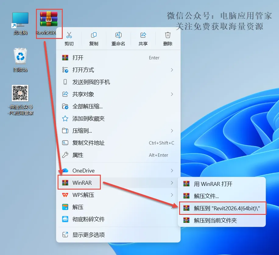 1.先下载好安装包,先点击一下压缩包,鼠标右键选“解压到Revit2027”。