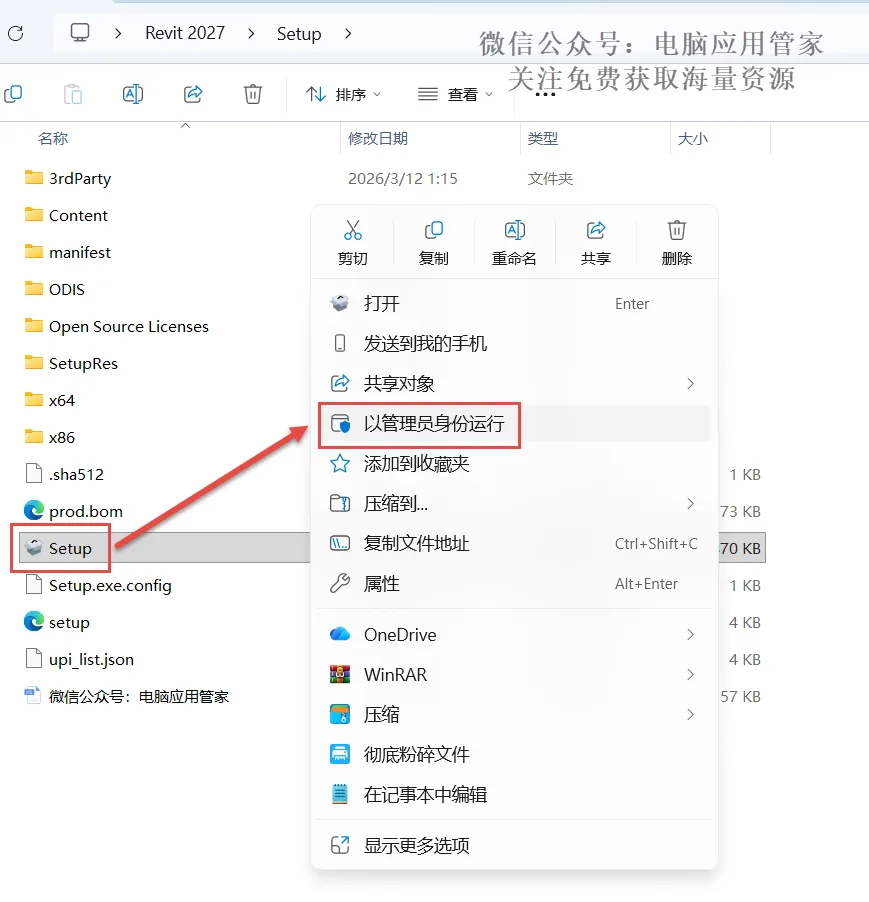 3.先点击一下“Setup”,鼠标右键选择“以管理员身份运行”。