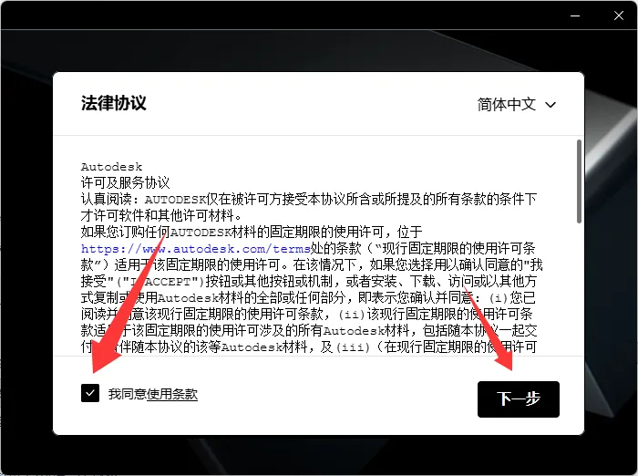 4.点击勾选“我同意……”,然后点击“下一步”。