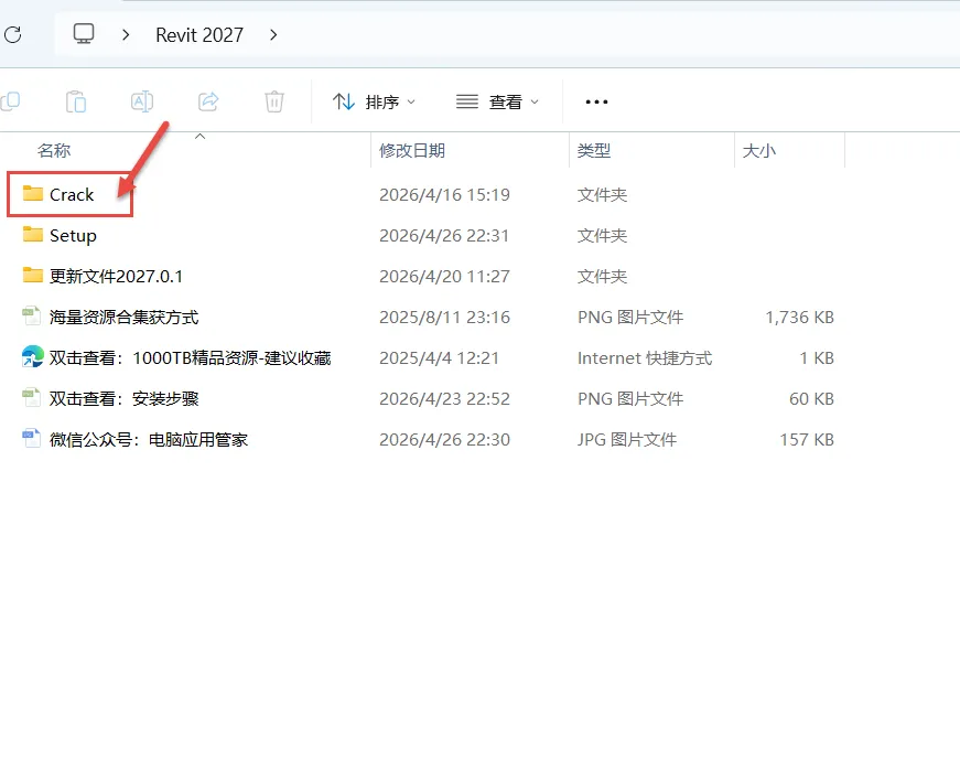 8.回到第一步解压后的文件夹,鼠标打开“Crack”文件夹。