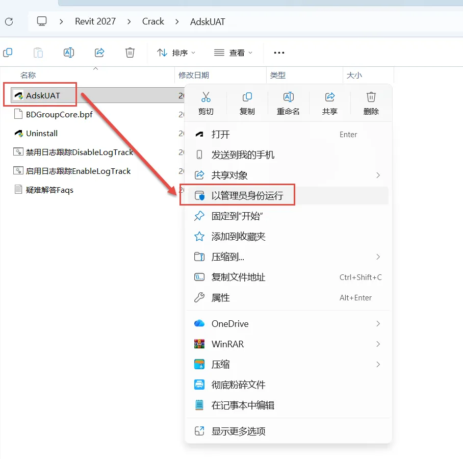10.鼠标右击“AdskuAT”选择“以管理员身份运行”。