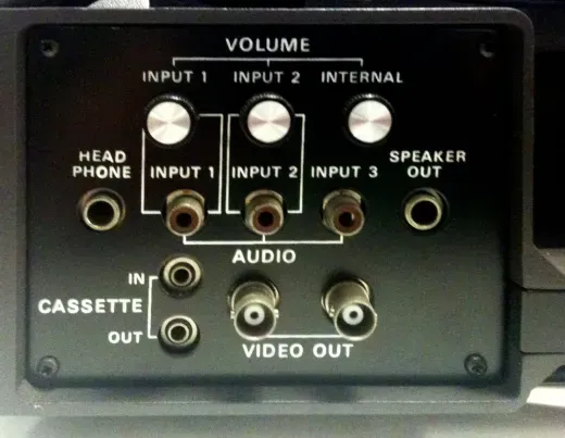 3个音频输入插孔、1个音频输出插孔、1个标准的 1/4 英寸耳机插孔,以及标准的盒式磁带输入/输出插孔