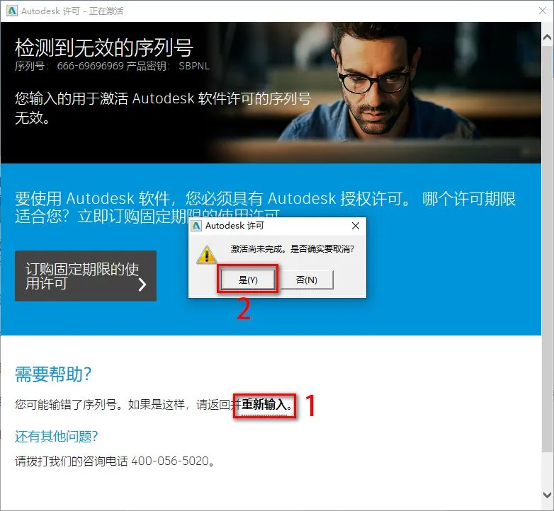14.如果出现以下提示,点击“重新输入”,点击“Yes”,重复步骤13