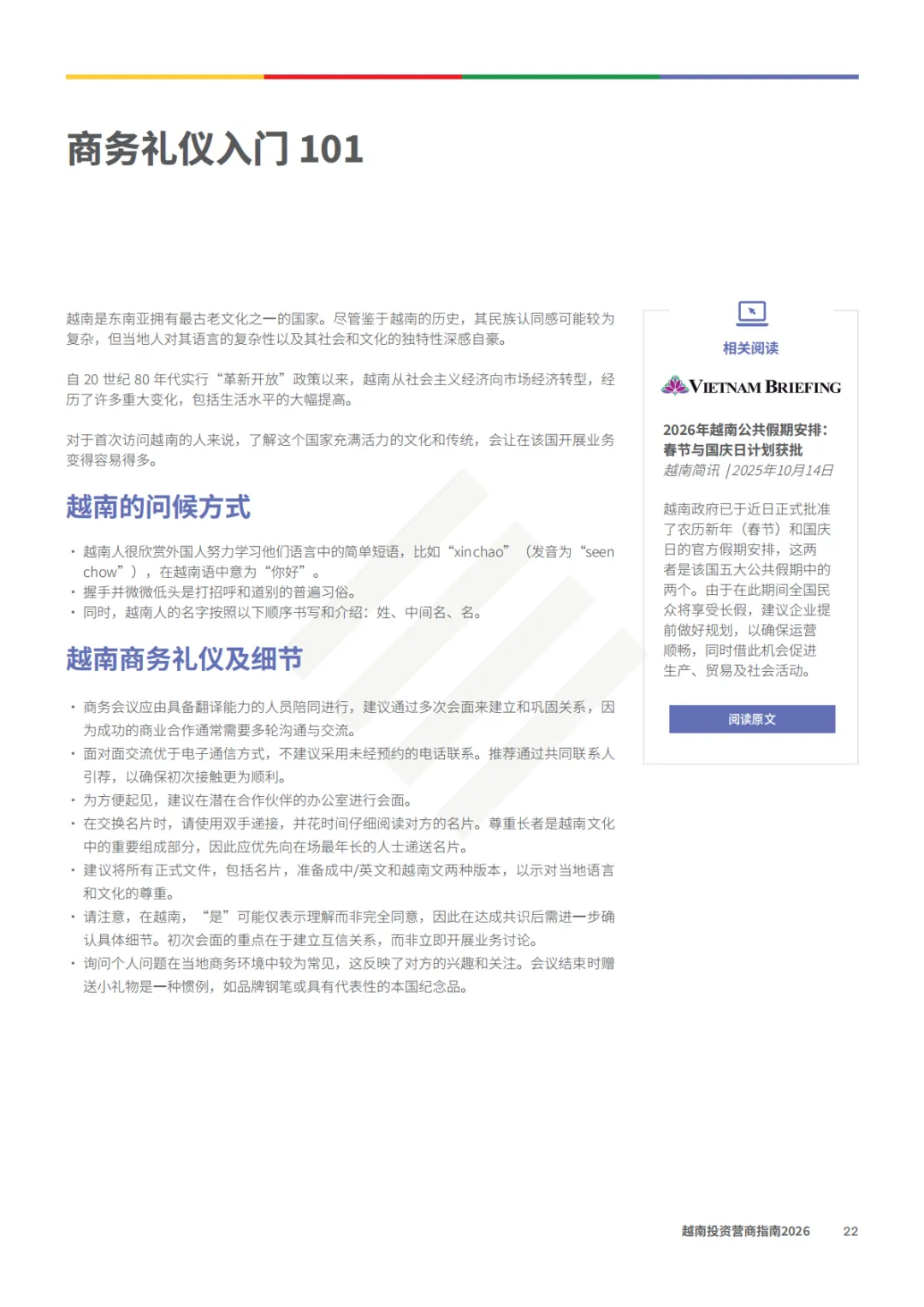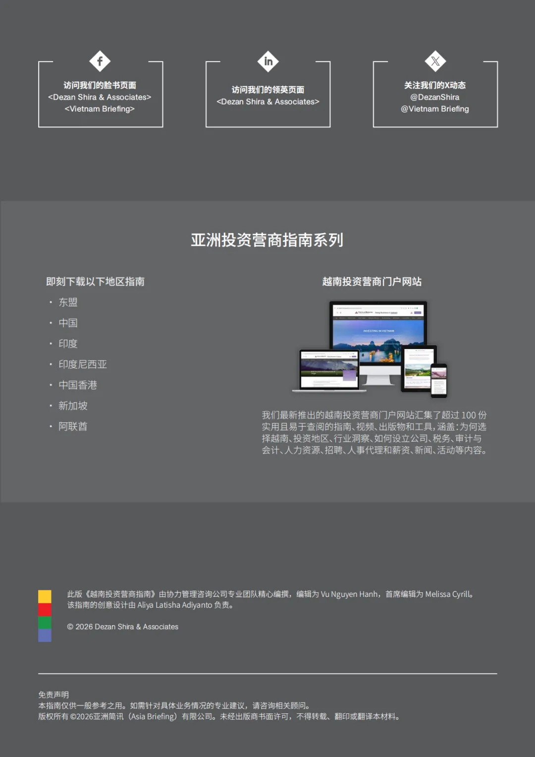 关注公众号,然后在首页对话框回复关键词“2026越南投资营商指南”,