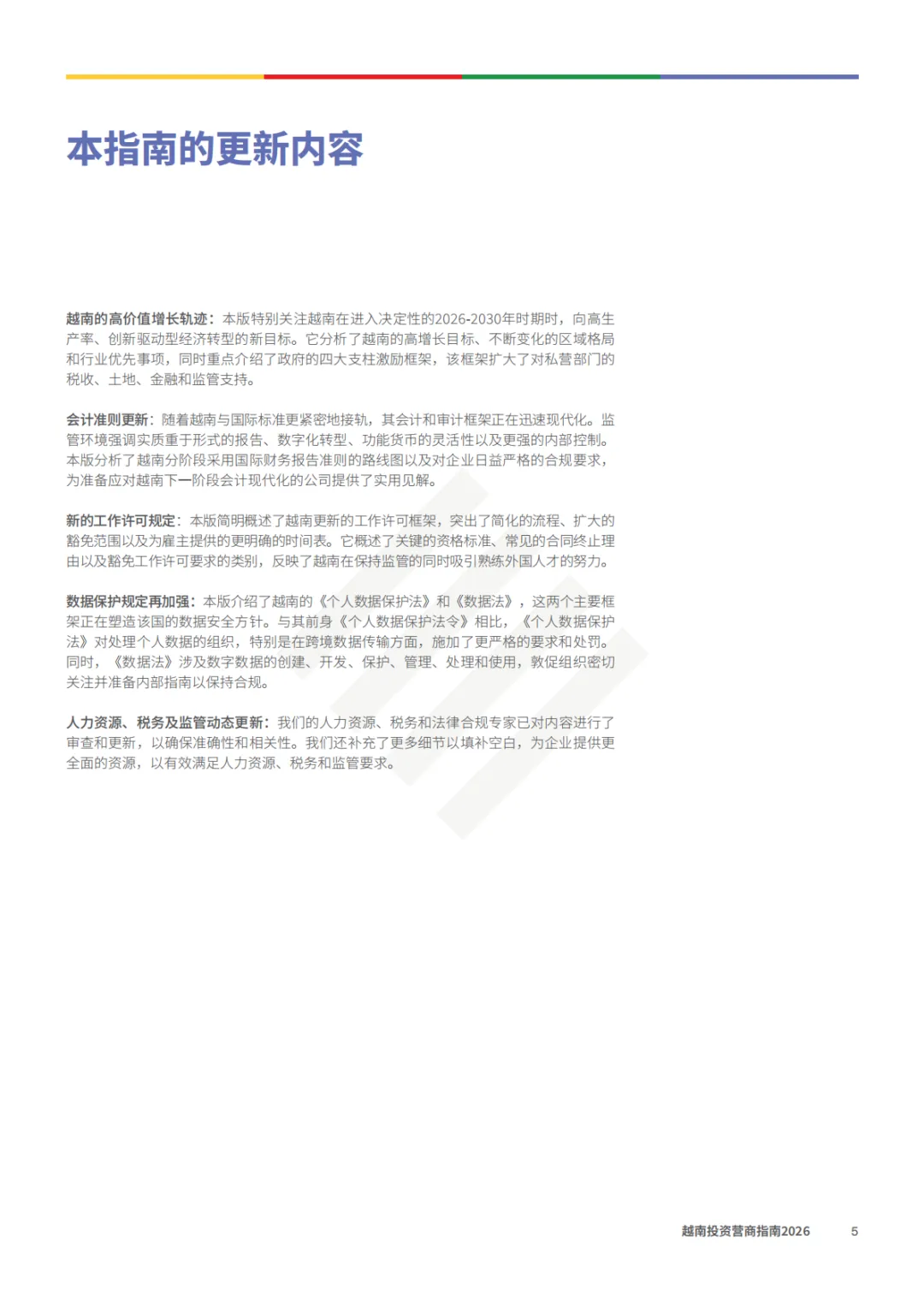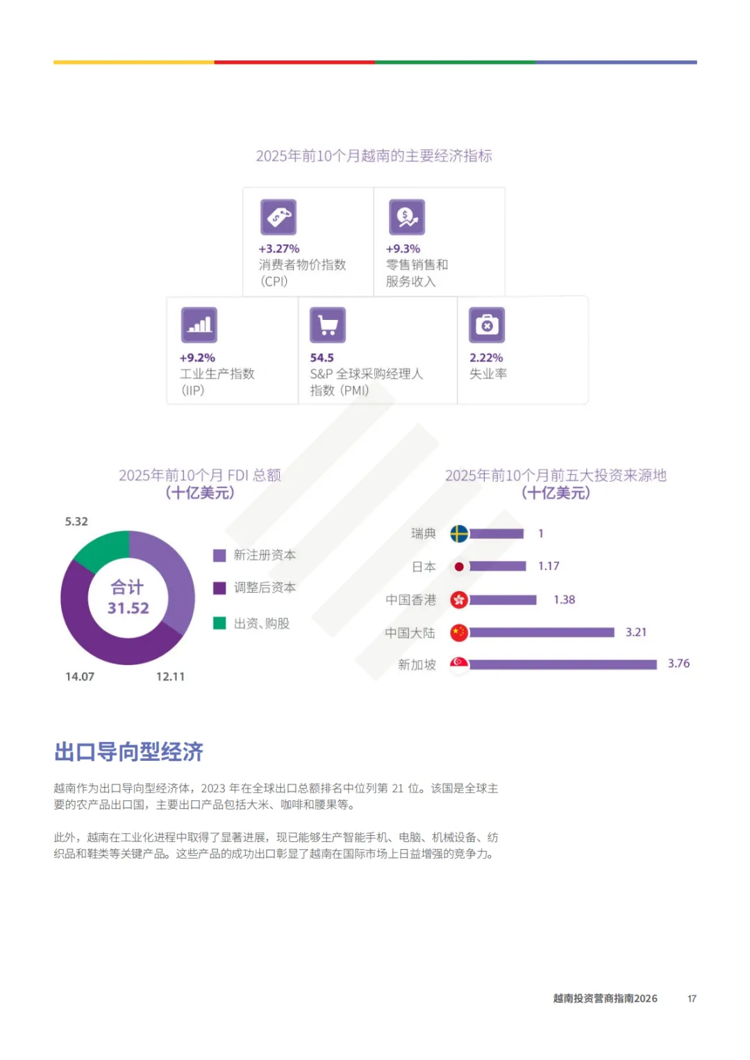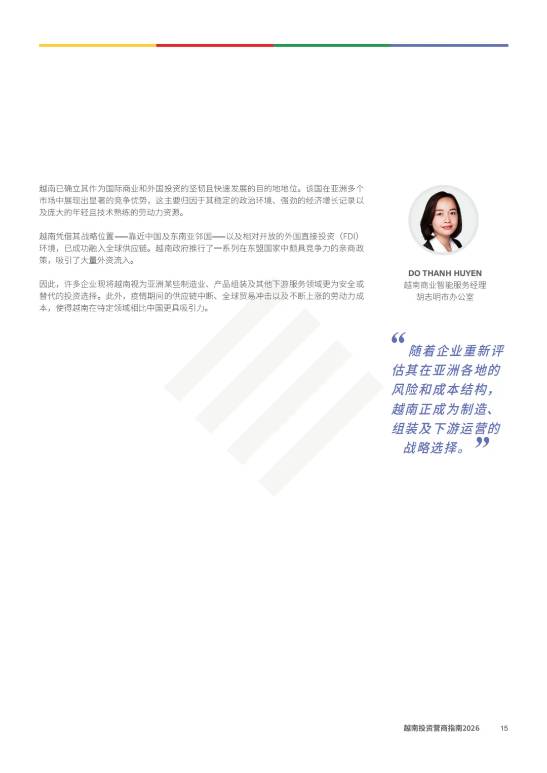 这份《越南投资营商指南2026》由协力管理咨询公司发布,全面介绍了越南在高附加值增长战略背景下的投资环境、政策更新与营商实务。以下是报告的核心内容概括: