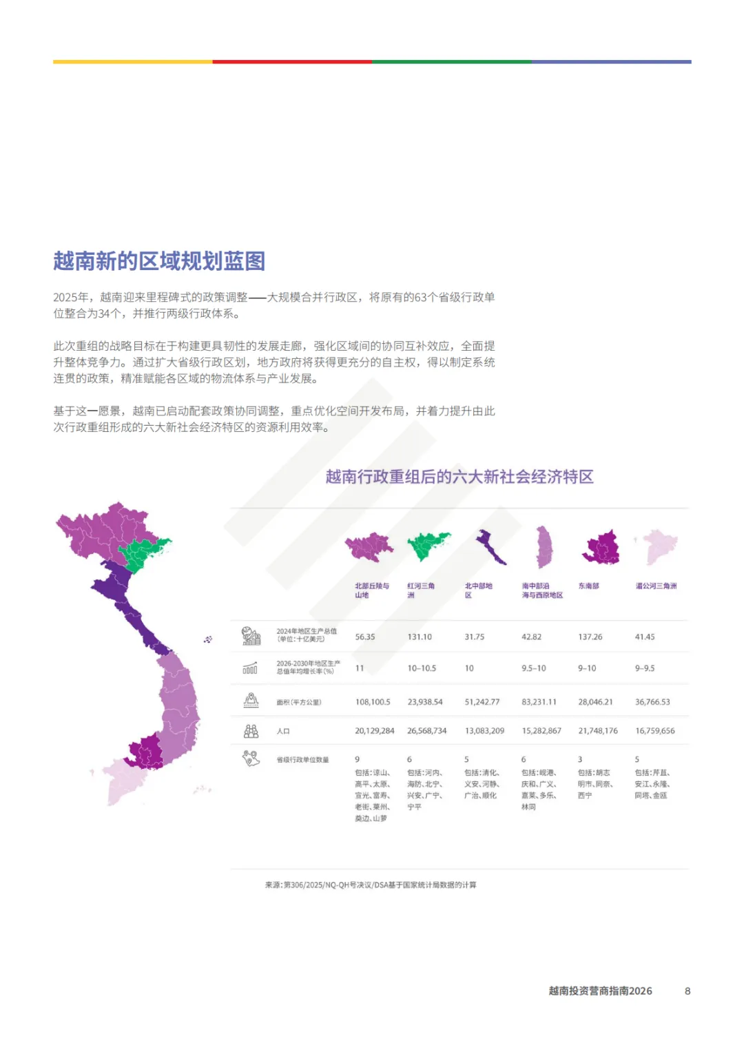 区域重组:2025年将63个省级单位合并为34个,形成6大社会经济特区,强化区域协同与资源整合。