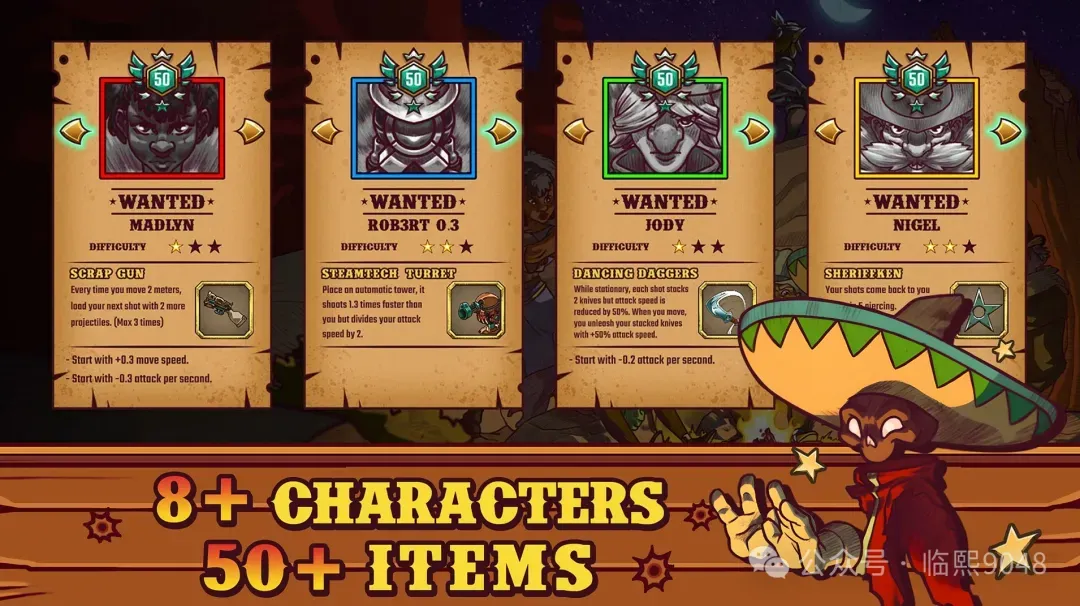 「赏金幸存者-Bounty of one:Premium」是一款弹幕类 roguelike 动作游戏,我们扮演一名狂野西部枪手,试图通过逐渐变得强大来在成群结队的敌人面前生存下来。