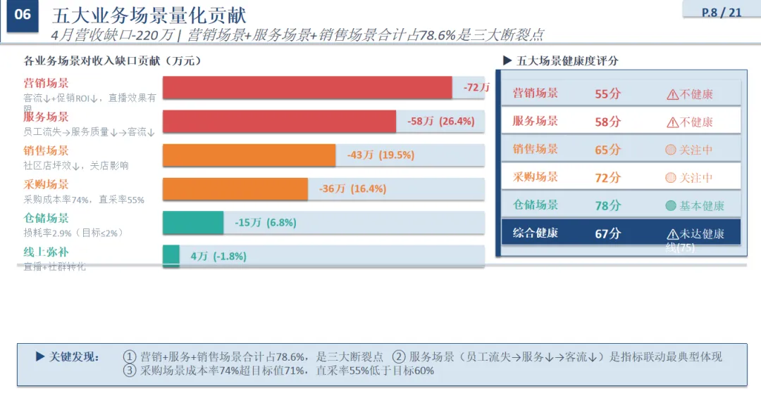 量化归因 :每个缺口、每个场景、每个节点均赋予金额贡献,责任可追踪