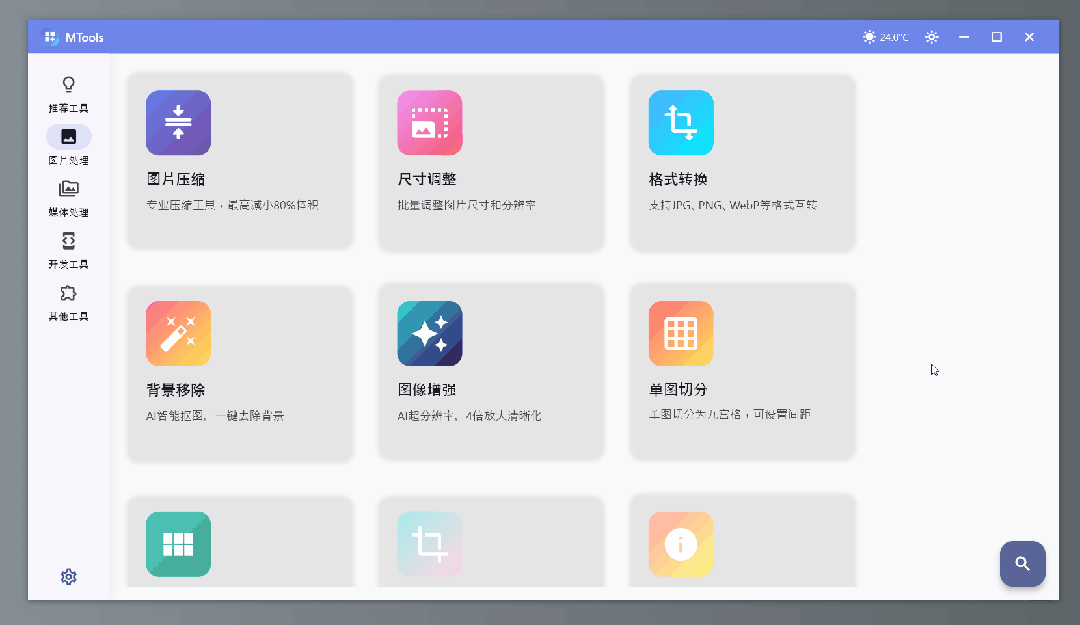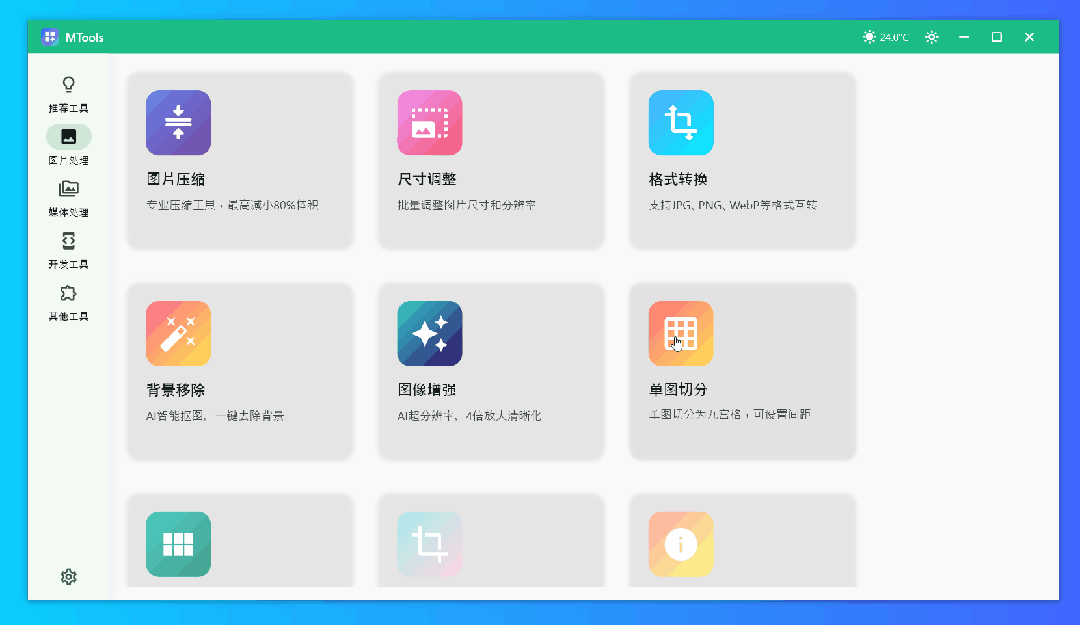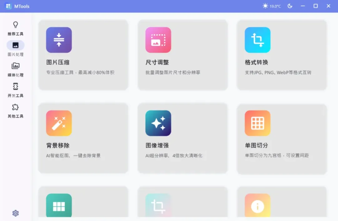 图片处理能力,主要是压缩,尺寸,格式转换,背景移除,9宫格处理,裁剪等。