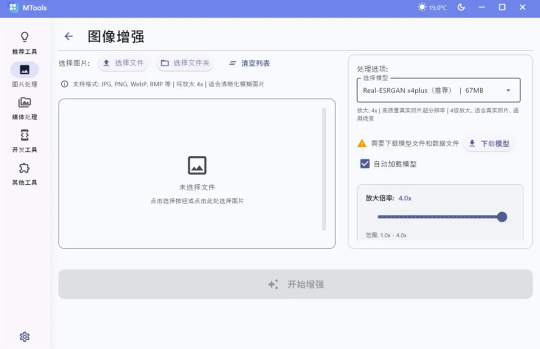 图片优化功能能够实现画质无损放大效果,使用前只需提前下载专属模型文件。等待模型部署完成后,就能根据自身使用需求,自由自定义调整图片放大倍率,在保留原图清晰度与细节的同时,高效完成画面放大处理。