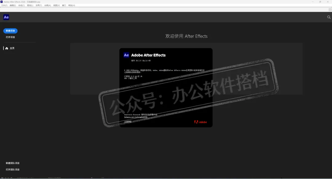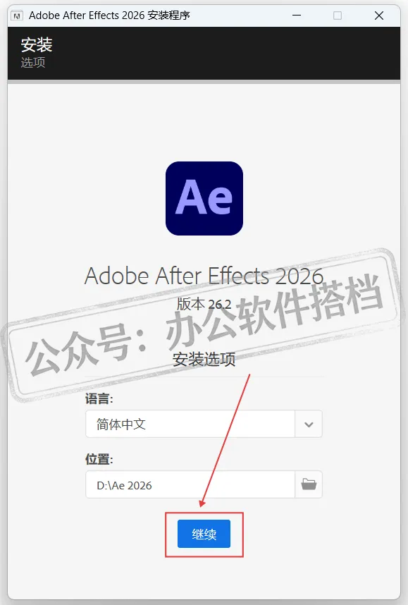 Ae软件2019到2026版本安装教程是一样,所以下面使用最新版Ae 2026示范!