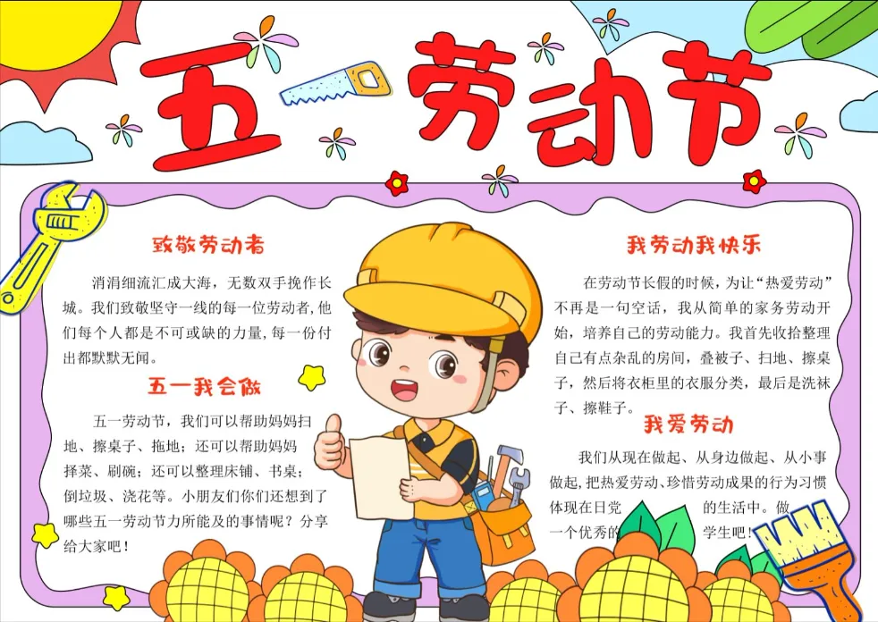 这个五一,不妨放下手机,和孩子一起动手制作一份专属手抄报,用色彩与文字致敬每一位劳动者,也记录下属于自己的劳动故事~ 如果你制作了优秀的作品,欢迎在评论区分享你的创意哦!