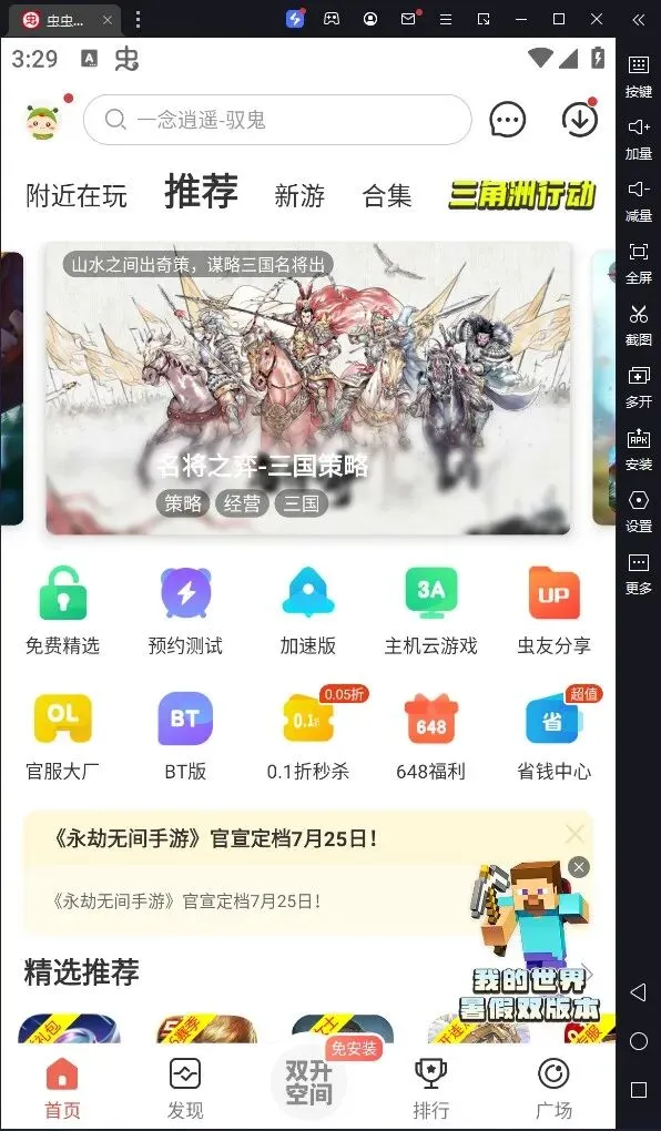 4、下载完成安装即可在模拟器中体验游戏,当然你也可以在软件中查看各种的游戏以及新上线的游戏;