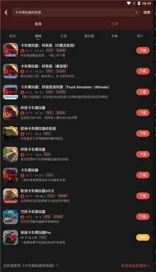 2、进入虫虫助手之后,我们可以进行搜索你需要的游戏,这里小编就以卡车模拟器终极版为例子;